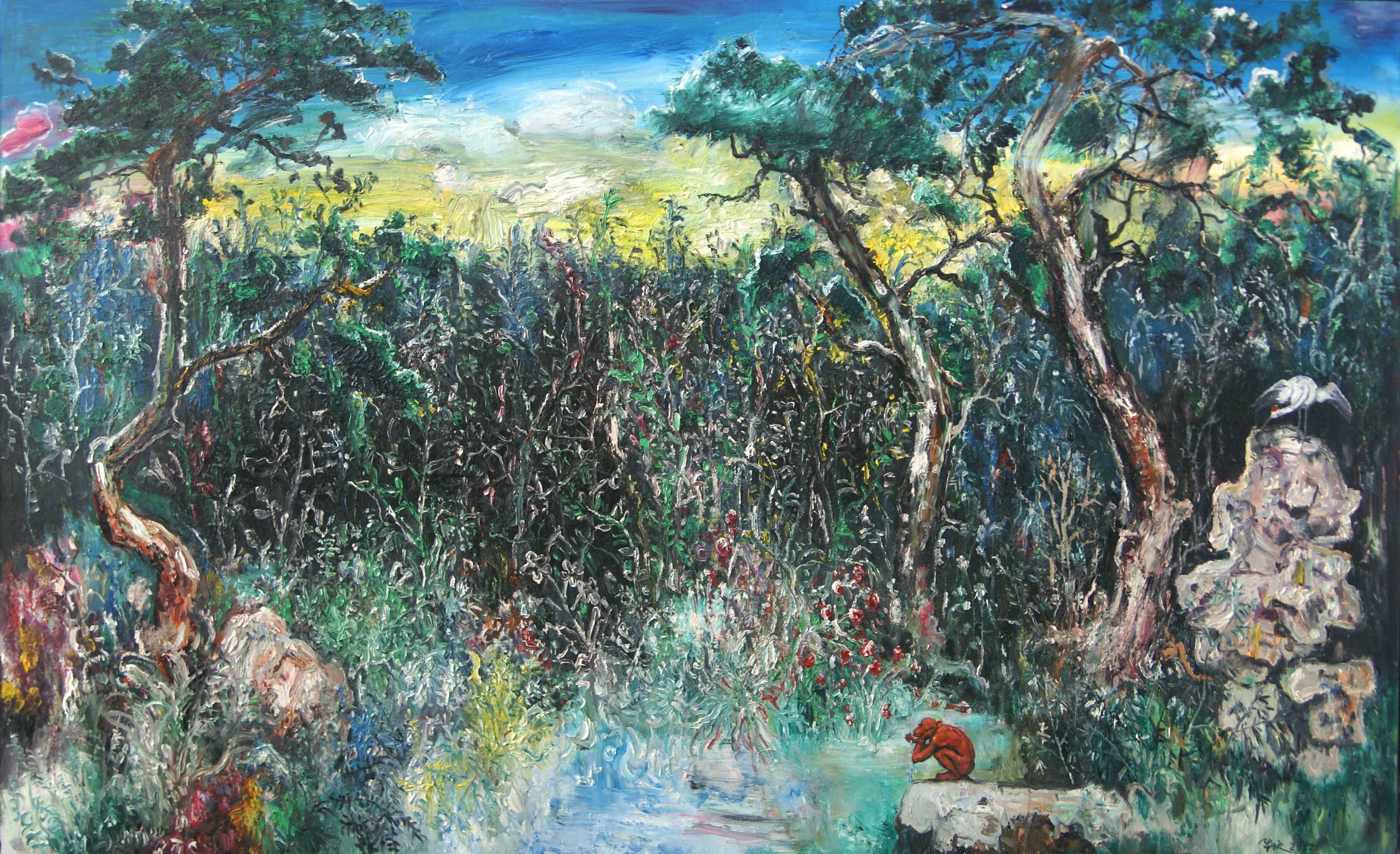 This acrylic landscape by Pat Service captures a roadside view of summer in the countryside. Signed to lower right. Highly regarded as one of Canada’s finest landscape artists, Pat ...