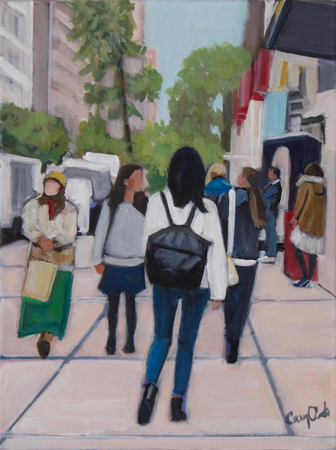 People bustle past each other, filling the sidewalks of 42nd Street in New York City. On this sunny winter afternoon, storefronts dazzle with colorful advertisements, while theater marquee lights reflect off restaurant windows. The sounds of traffic mix with the lively beat of Spanish rock music from boom boxes, infusing the air with the vibrant pulse of urban life.
