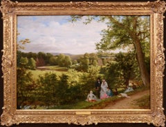 This stunning large 19th century landscape oil painting is attributed to follower of Joseph Turner, possible George William Mote. Painted circa 1850 it is a panoramic landscape loo...