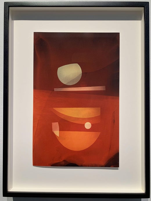 ATO>MIC #10, 2020 Unique Gelatin Silver Print/ Luminogram and Photogram technique, Printed on tea infused fibre based paper, Framed: custom made frame with anti-reflective art glass Print size: 23 x 18 cm Framed: 38 x 35.5 cm Unique Series: ATO>MIC Signed and dated in pencil on print's verso Certificate of Authenticity provided "At first glance the viewer may only see geometric spherical shapes with added lines and rectangles on tea toned Silver Gelatin paper. "The supremacy of pure artistic feeling" rather than the visual depiction of objects assign to the art movement of Suprematism comes to one's mind. Similarly, like a giant of abstract art Kasimir Malevich, Jackson wants the viewer to look further, deeper than one might usually. The feeling of 'sensation' of the ATO>MIC prints, the sharpness of the forms, the intensity defying its size to condensed 9 x 7 inches' paper, make it all the more dramatic to look at. It takes the viewer to another level of fantastical world of creation." Beyond these flat forms of two dimensional ‘lumino-graphic’ works on paper, the purest form of photography (‘light drawing’) lays a visible path to three-dimensional imaginary world, realised in precise composition, rhythm and warm earthy tones of these works. It’s up to the viewer to decide what they prefer to see and take with them. As Wassily Kandinsky once said; “Imagination is what allows your mind to discover.” About the Artist: Michael G...
