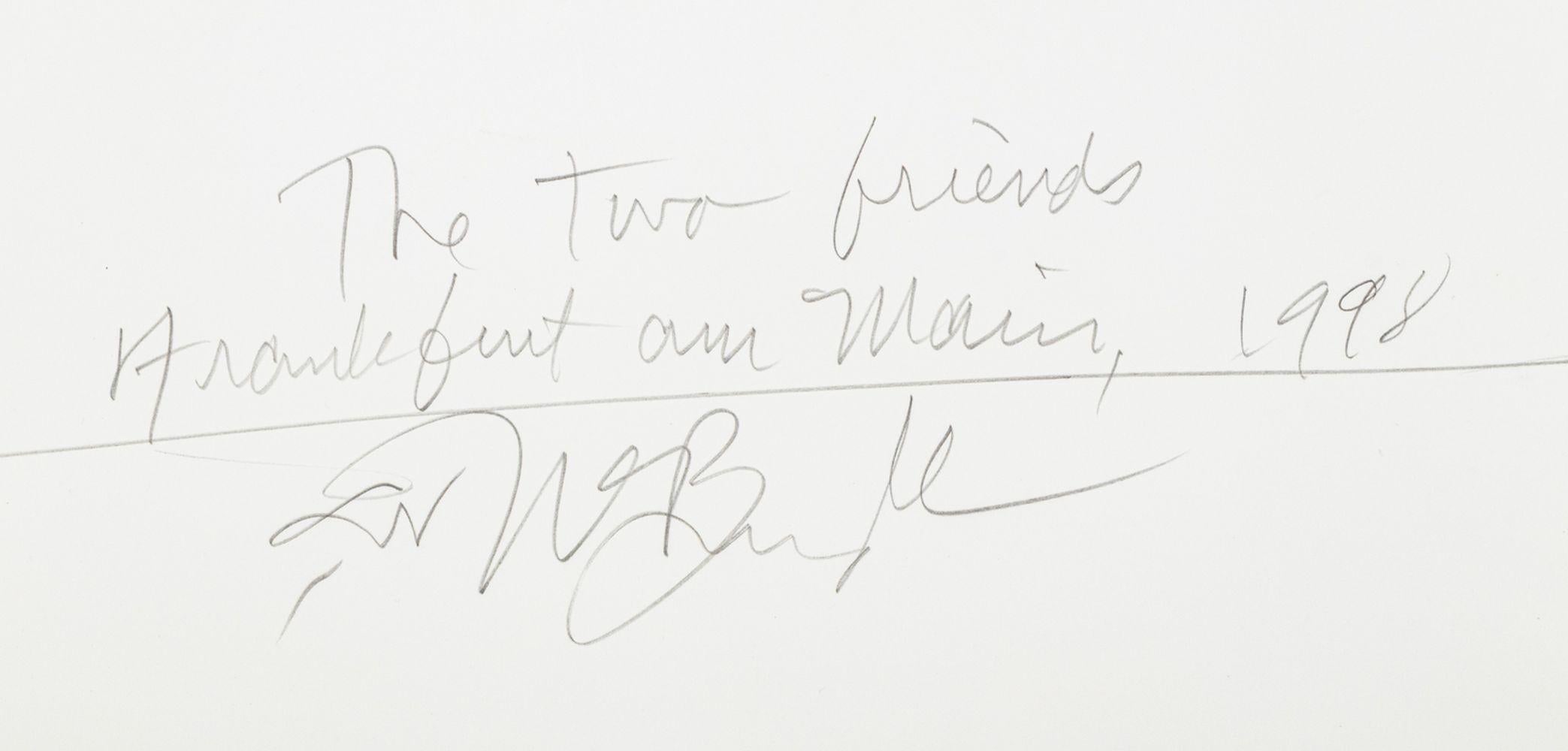 Will McBride (American, 1931-2015), "The Two Friends, Frankfurt am Main", Gelatin Silver Print, 1998, signed, titled and dated to the verso, silvered wood frame. Image: 18" H x 12" W; frame: 24" H x 18" W x 0.75" D. Provenance: From a New York City Area Collection.