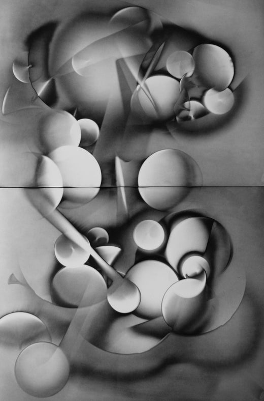 Michael G Jackson ATO>MIC #13, Unique Silver Luminogram Print, Two spheres and triangle with shade2020