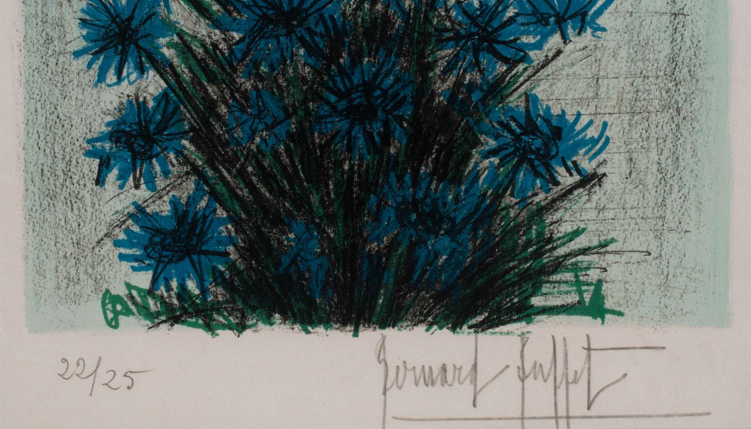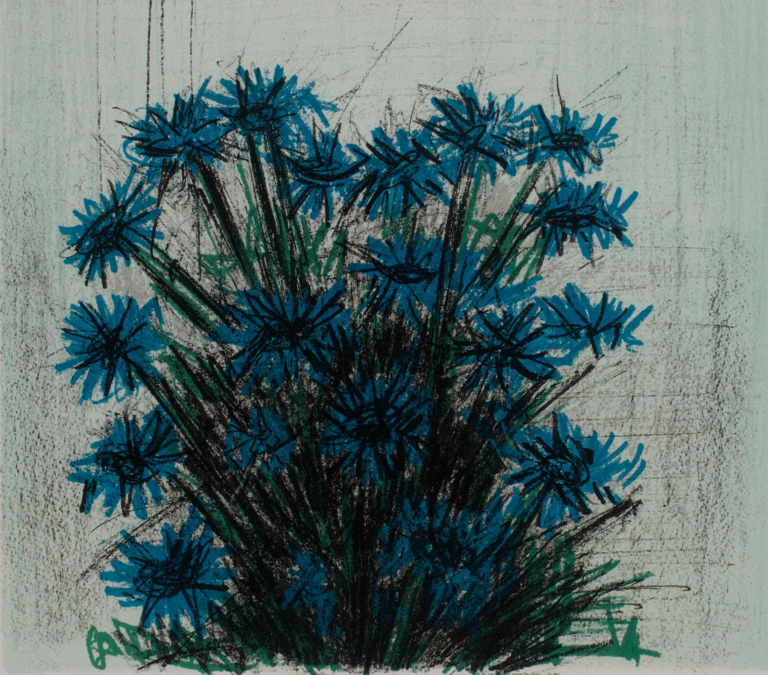 Bernard Buffet"Les Myosotis" (Forget-Me-Not) Hand-Signed Lithograph by Bernard Buffet, Framed1966