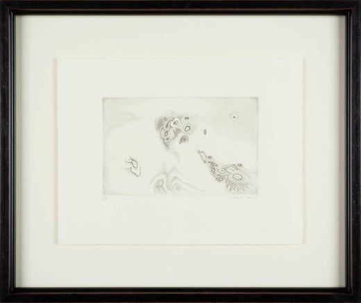 Cécile Reims (French, 1927–2020) Born in France in 1927, Cécile Reims joined the French Resistance during World War II and was later awarded the Legion of Honor for her service. In the years following the war, she turned her focus to the arts, becoming a master engraver known for her extraordinary precision and technical skill. Reims collaborated with major figures of the 20th century while also developing a deeply personal body of work. Her engravings often explore organic forms, cycles of life and decay, and the delicate interplay between the real and the surreal. Though she frequently worked in service of others’ visions, her own compositions reveal a singular imagination—one attuned to transformation, fragility, and the strange beauty of the natural world.
