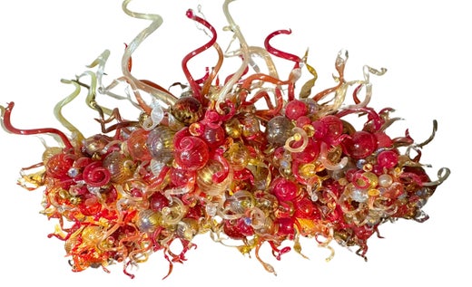 Chihuly’s inspired creative energy has brought glass blowing to a place at the forefront of the arts in the United States. His prolific body of work is coupled with a dedication to artistic instruction, education and community. Trained in interior design at the University of Washington, he pursued graduate work with Harvey Littleton, who built the first academic art glass program in the U.S. at the University of Wisconsin-Madison. After further studies at the Rhode Island School of Design, Chihuly was awarded a 1968 Fulbright Fellowship to study glass blowing at the Venini glass factory on the island of Murano in Venice, where he was first introduced to group collaboration in glass making. Not only has Chihuly been committed to his own improvement as an artist, but he has also devoted much of his career to sharing his knowledge. He returned to RISD as an instructor, and after working there for more than a decade and he cofounded the Pilchuck Glass School in Washington State in 1971. An automobile accident in 1976 left Chihuly blind in one eye; a subsequent injury while bodysurfing weakened one shoulder, leaving him reliant on assistant glassblowers to execute his designs.