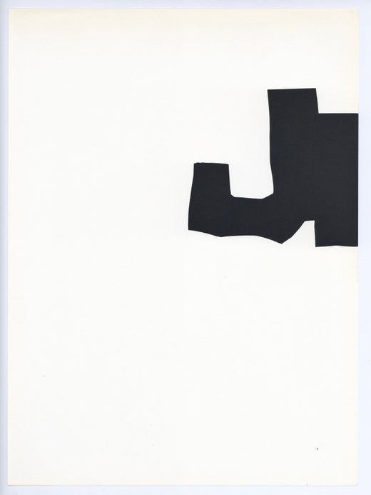Eduardo Chillida studied in Madrid and then went to Paris, where he was influenced by Pablo Palazuelo in his first figurative work, done in plaster and clay. Other influences were Frank Lloyd Wright, Albert Giacometti and Joan Miro. In 1950, he began doing printmaking lithography, woodcuts, etchings, drypoints and silkscreens. His graphics are not related to his sculpture but are creative expressions unto themselves. During the 60s, his graphics tended to be massive black lines on white, giving the appearance of realistic shapes.