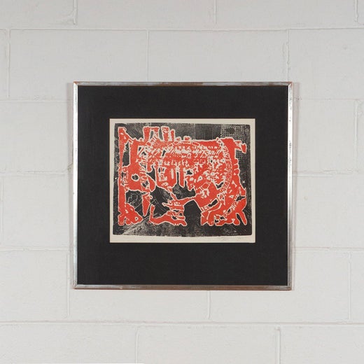 Harold Town remains one of the most accomplished and fascinating characters from the Painters Eleven group. While Town coined the group's name (based on the number of artists, who simply attended their first meeting) his output was diverse, ever-changing and not restricted to painting. Somewhat ironically, his first significant body of work, which established his reputation as a group of monotypes - which he called Single Autographic Prints. Town was introduced to lithography by fellow painters Eleven member Oscar Cahen. The Single Autographic Prints were first exhibited in 1954. Two years later the National Gallery of Canada would successfully nominate him to represent the nation at the Venice Biennale. By the end of the decade, Town received international accolades for these works and had become one of the most admired artists in Canada. This complex mauve-hued example of a Single Autographic Print is Harold Town at his best; layered, rich colors creating a hypnotic inimitable abstract surface. This type of SAP is particularly sought-after as it is one of the earliest and features a distinct graphic collage-like composition made up of blocky shapes. Such elements would become signatures in Town's oeuvre. An essential work for any collection of post-war Canadian abstraction.