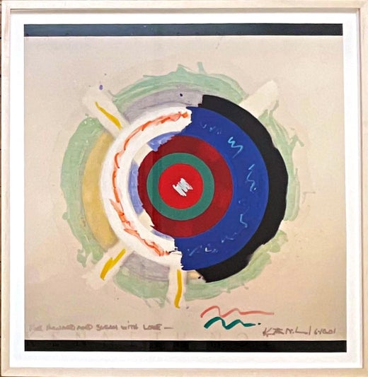 Kenneth NolandMonotype w/hand painting, geometric art famed color field painter, signed Framed, 1987