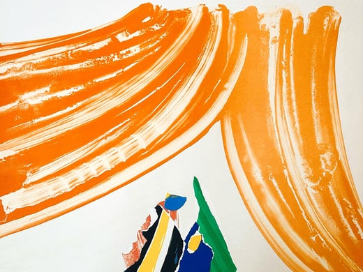 Like a curtain of light, the lithograph comes to life with an ample, fluid gesture. Olivier Debré rediscovers the freedom of movement, akin to a wash, where color seems to breathe, spread out and withdraw, as in his stage curtains. The surface becomes a space of sensitive circulation, a painting in suspension, where each nuance bears the trace of an inner rhythm. The curtain conceals nothing: it becomes a metaphor for passage, a living frontier between the visible and the emotional.
