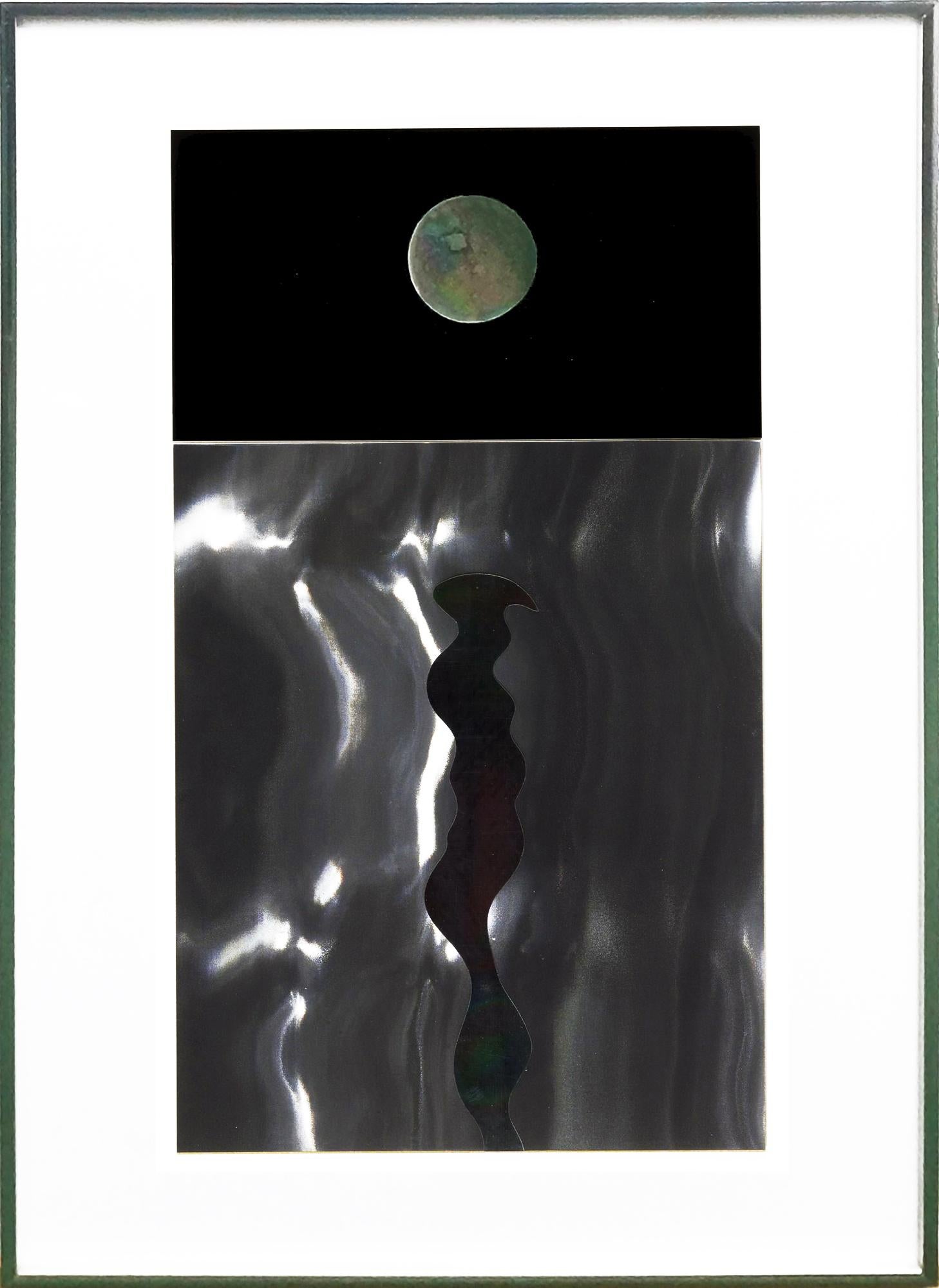 Hand signed, numbered and dated on verso. Landscape 8, from Ten Landscapes (C. 58). Iridescent silver Mylar collage on opaque black Rowlux and gray moire Rowlux. The full sheet, moun...