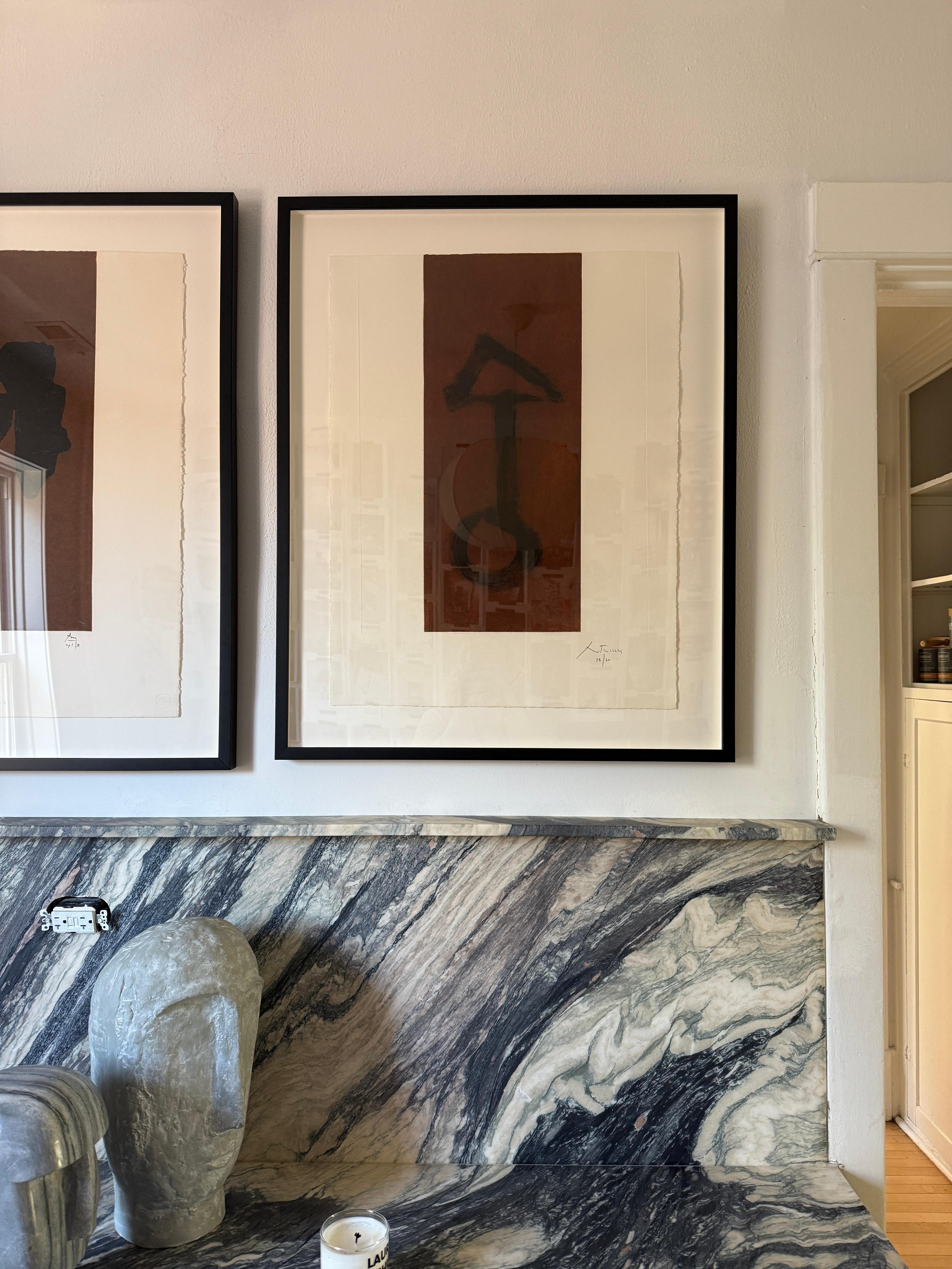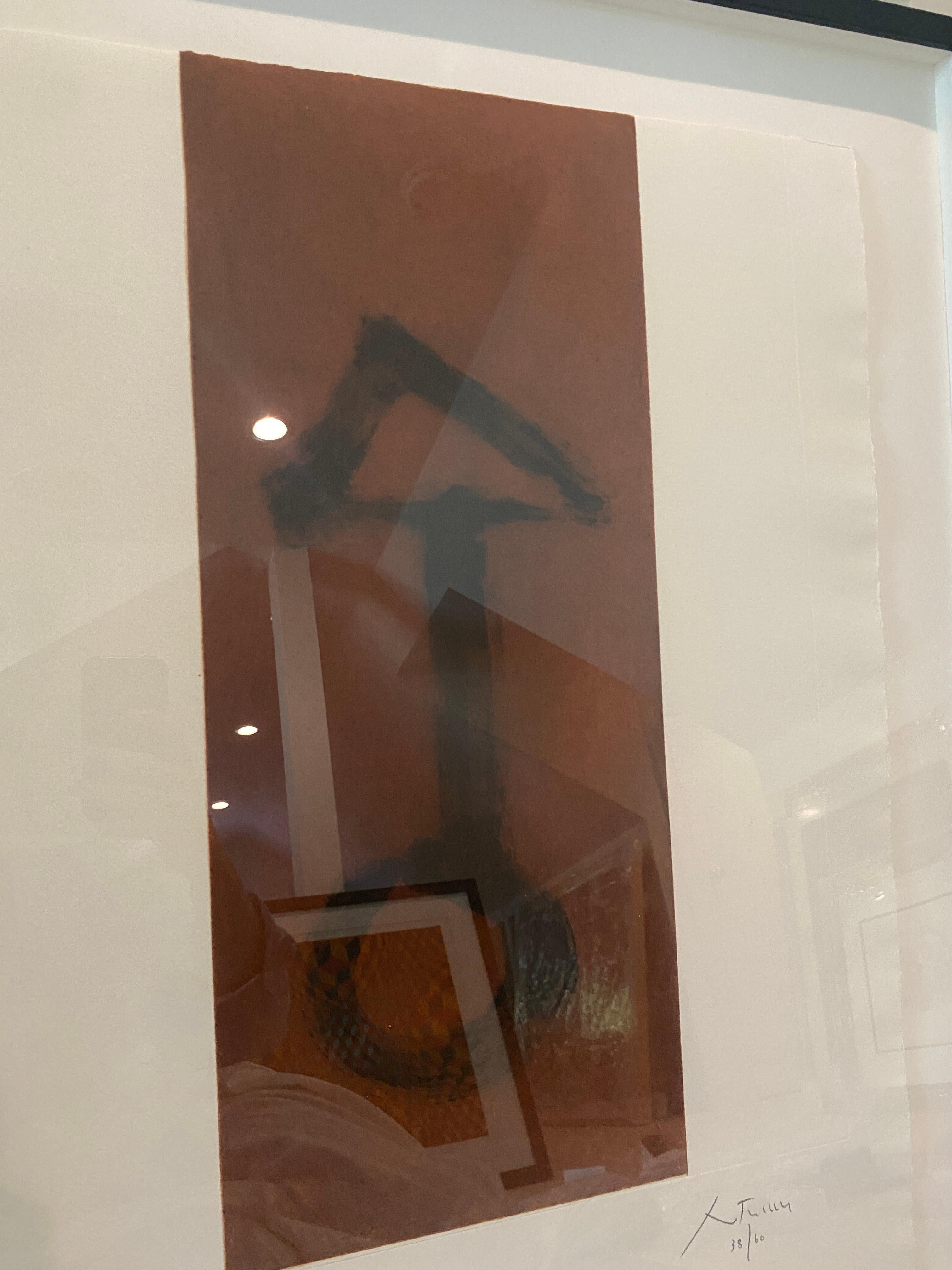 Works like the 1967 Beside the Sea no. 45, an acrylic on canvas, and the 1966 lithograph New York International epitomize Motherwell’s use of simple shapes in boldly contrasting colors, executed in quick, gestural strokes that occasionally evoke figures, suggesting a latent narrative despite their obvious abstraction.