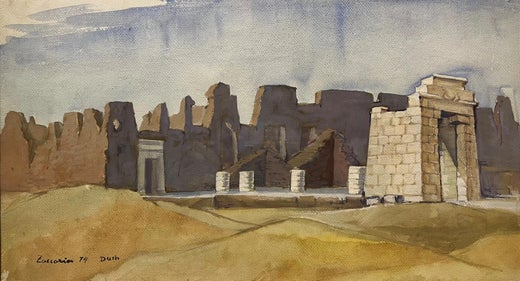 Zaccaria El Zeini (1932 - 1993) was raised in the popular district of Sayyida Zienab in Old Cairo and graduated from the Faculty of Fine Arts in the city’s capital, where his graduation project revolved around the birth of the female saint, the namesake of the area where he was born. He was a postwar Modernist who received his formal training in painting in Venice, graduating from the Academy of Pravana, and it was in Italy that he gained his fascination with Greco-Roman architecture, which would develop into a preferred subject in his painting. He later became a professor at his alma mater, the Faculty of Fine Arts, and ended his career as head of its painting department. El Zeini’s oeuvre spans predominantly expressionist and abstract-figurative painting styles, with a strong proclivity towards using different personal symbols in his work and throughout several periods. These symbols connote each of the three wives he had during his life, and he cryptically places these symbols as markers throughout his paintings, whether discreetly or overtly. His formative upbringing in the Sayyida Zeinab district remained one of the most significant influences on his trajectory as an artist, having been exposed to since birth the popular celebrations and festivities surrounding the birth of the granddaughter of the Prophet Muhammed.