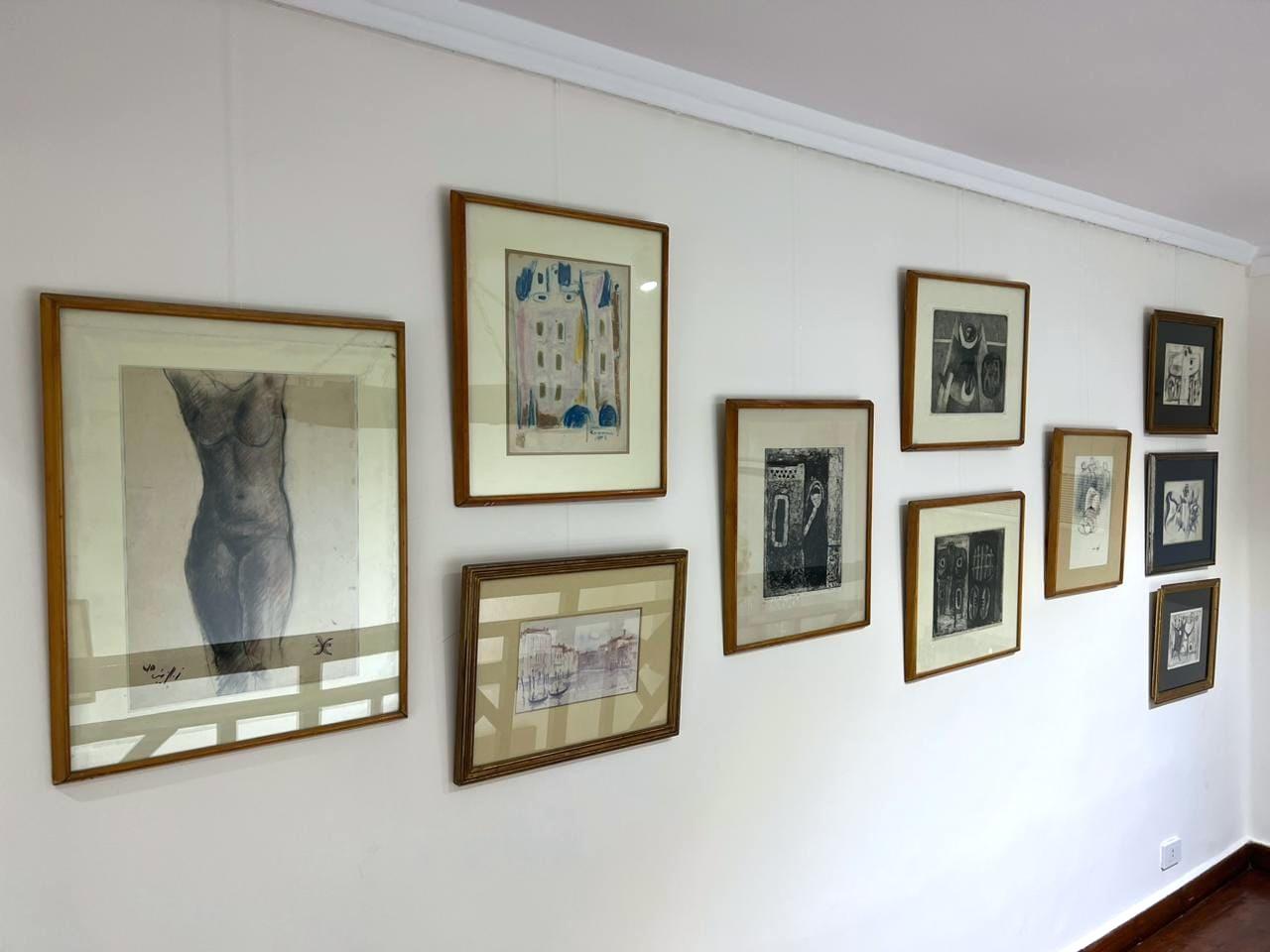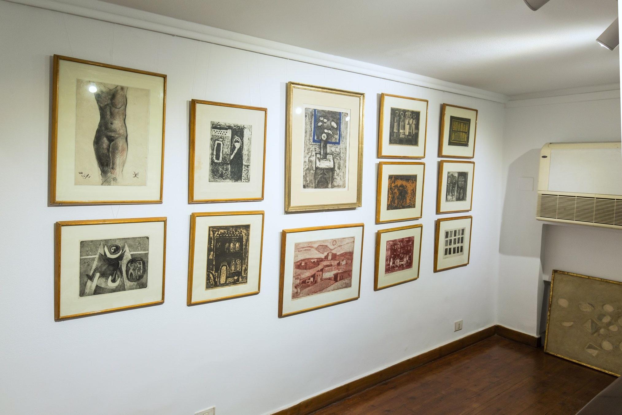 In some early works when he concentrated on the plight of the woman, and constantly featured women enclosed by such simplified bars, windows, or doors, in his basic geometric enclosures, in doing so he was criticizing the passivity of women and her role vis-à-vis her society. In his second period, El Zeini devoted himself to the artistic study of the concept of garbage and waste, ‘el zibala.’ El Zeini emphasized the salient topic of waste management on the streets of Cairo, he accomplished this by often dividing the painting in two and depicting abstract forms of detritus, debris, and discarded waste throughout the canvas and on either side of the divide. This period was a thoroughly original artistic undertaking and underscored the artist’s innate predilection for dedicating his art to social themes and with an underlying message that permeated his work, which has remained especially pertinent in today’s world. In his final period, El Zeini focused on the impression of flowers, introducing us to an alternative view of the subject by using geometric design and three-dimensional shapes. El Zeini also left us various examples of impressive lithography, which he became deeply involved with later on towards the end of his career and death, covering the more calming and serene themes of landscapes and flowers.