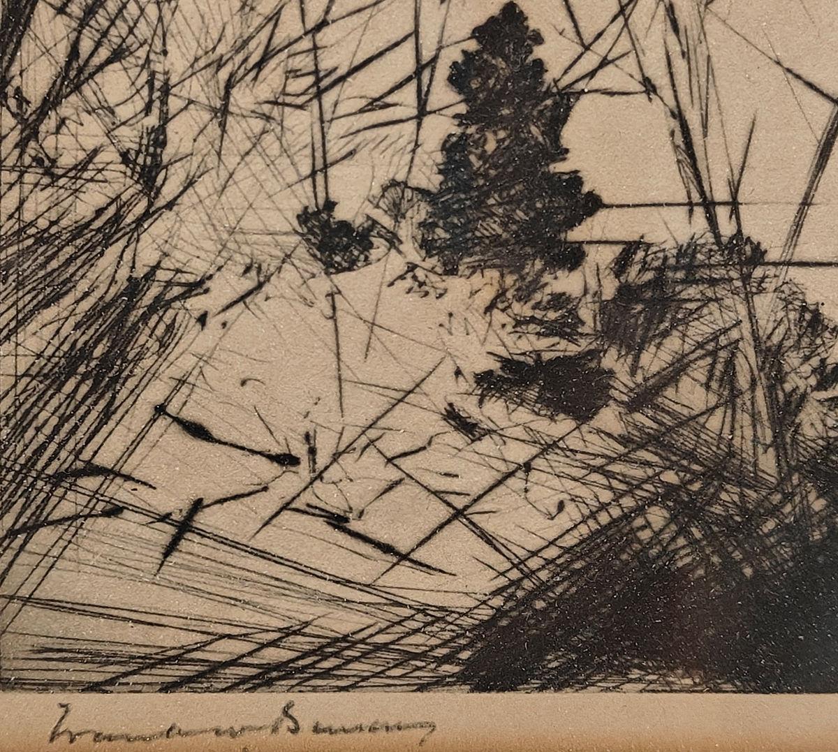 In 1911, simply as a form of recreation, Benson began experimenting with the art of etchings in his barn studio in Maine. In letters to an artist friend, Charles Woodbury, Benson revealed a growing fascination with this medium during the first few years of his printmaking. During the next four years, he completed several dozen etchings although he did not exhibit any of them. In 1915, at the urging of friends, he included a few of his etched pieces at a one-man show at the Guild of Boston Artists. The etchings sold out within a week and the demand for Benson’s etchings grew steadily over the ensuing decades. Collectors placed standing orders for each new edition and, at one point, Benson had to write a dealer in dismay that “We are not exactly happy over the etching question ourselves. A sudden increase in the demand last year used up our stock in a month. This year they have been mostly sold in a week, apparently. Out of an edition of l50, we keep 25 to sell at advance prices when the first l25 are sold. "