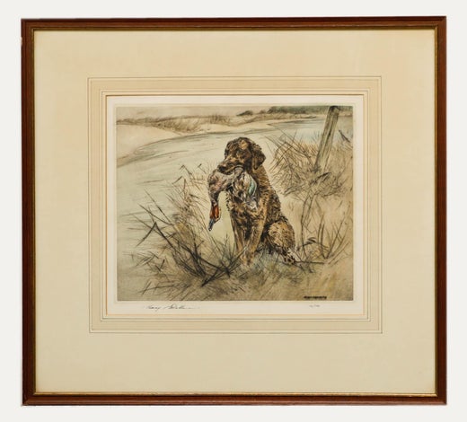 Léon Danchin (French, 1887–1938) Dog and Woodcock – Original Hand-Colored Etching
