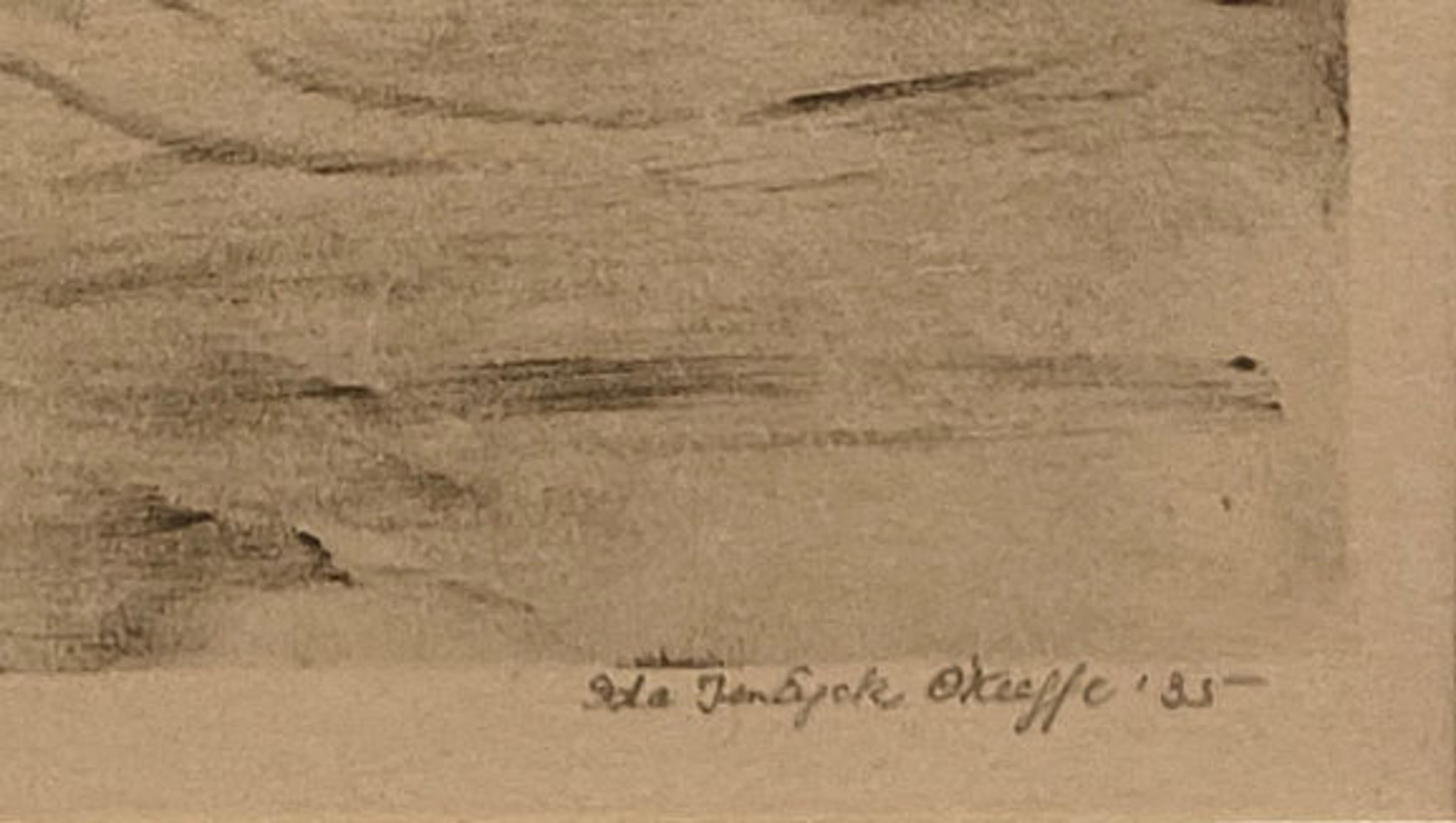 Ida Ten Eck O’Keeffe, Georgia’s artistically talented sister, was unknown to a majority of art enthusiasts until recently. The second daughter of five sisters born to the transient O’Keeffe family in Wisconsin, she received art lessons but after the family’s disastrous financial move to Williamsburg, Virginia, Georgia was the only sibling to receive constant formal schooling. When the family moved to Charlottesville, they converted their home there into an income-producing boarding house, Ida studied education in southwest Virginia, eventually receiving her degree in 1917.