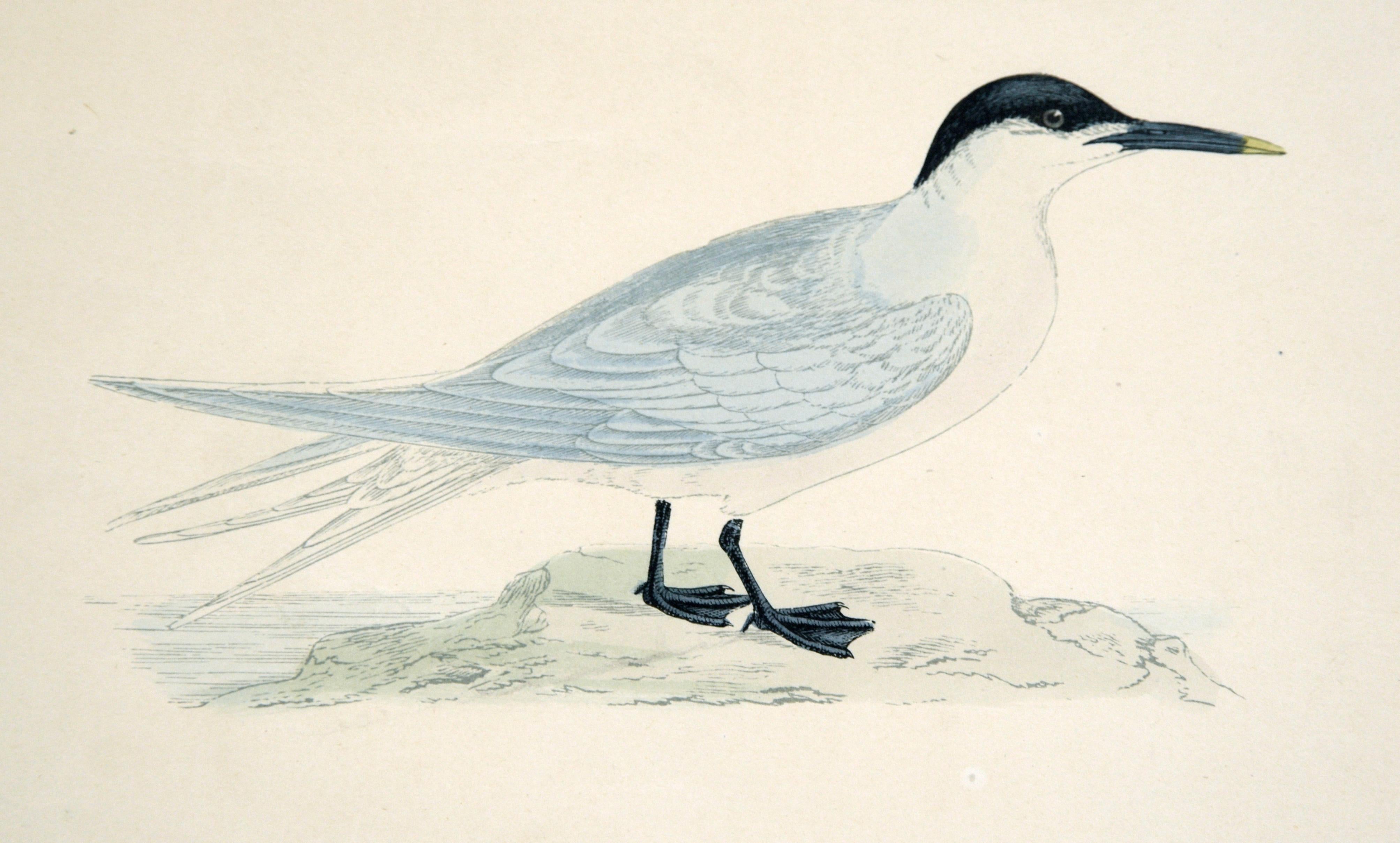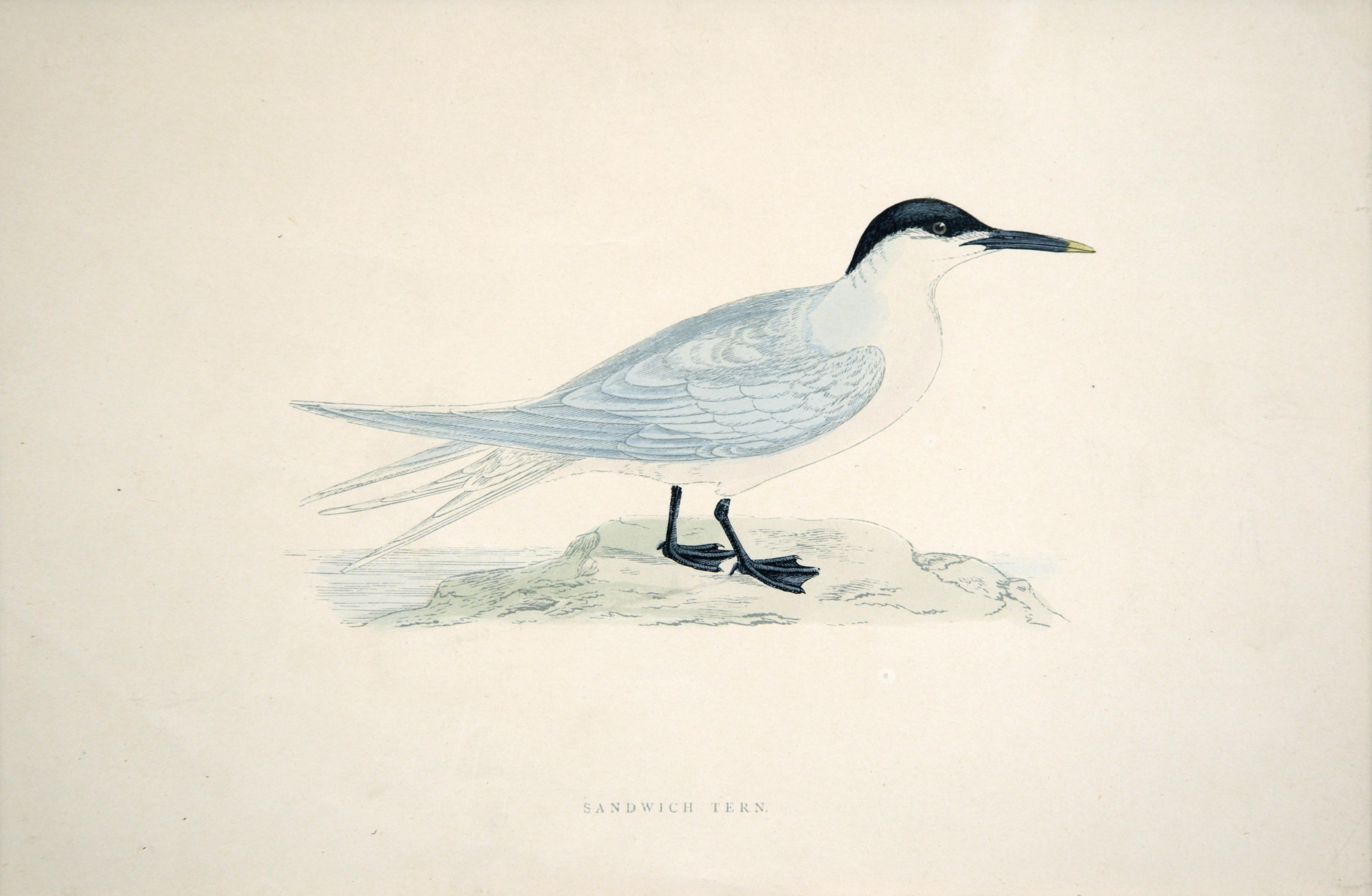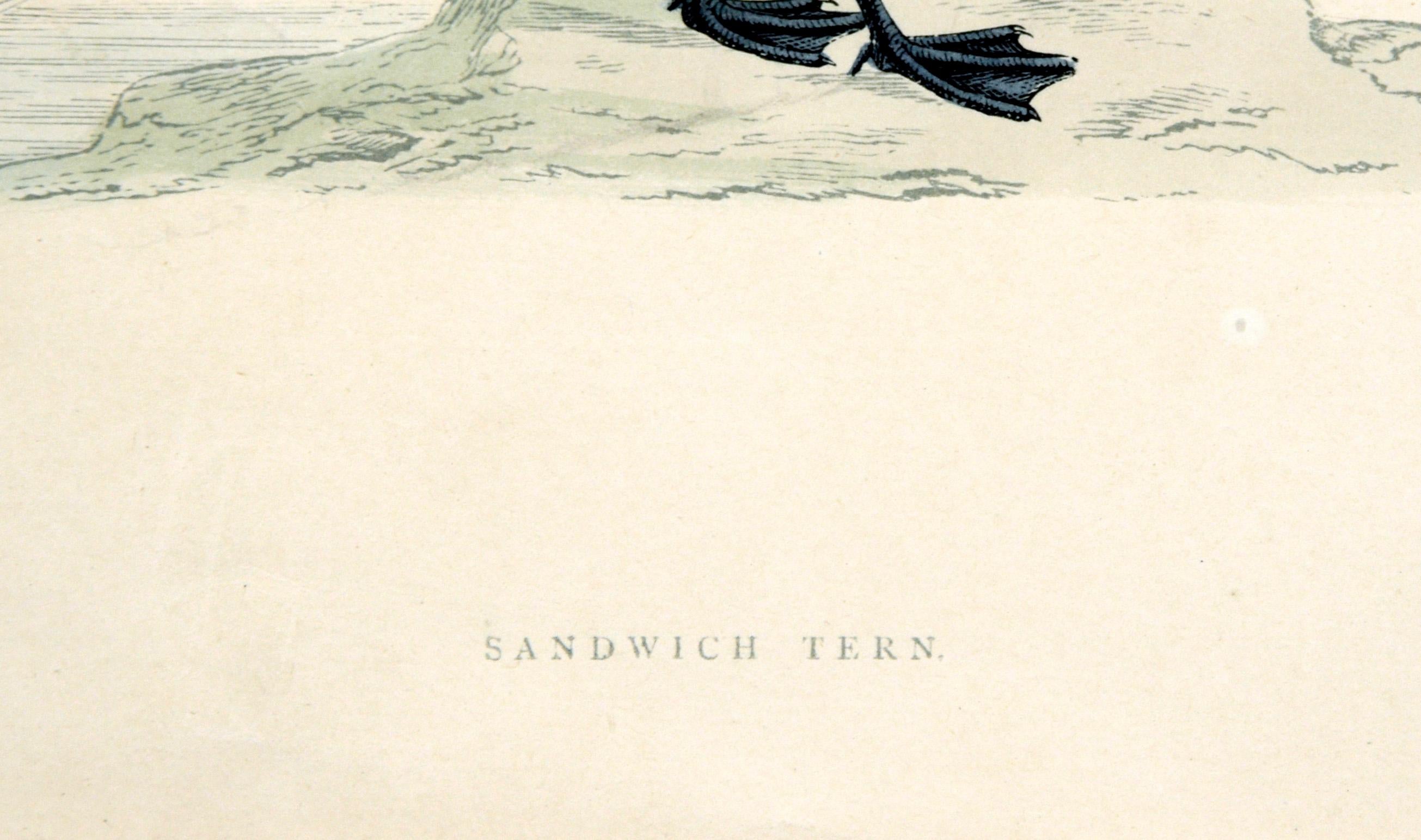 This fine hand-coloured engraving depicts the Sandwich tern (Thalasseus sandvicensis), a graceful seabird ...