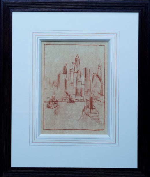 Adriaan Lubbers was born in The Netherlands and was the son of a well-to-do estate agent. As a young man, he studied mechanical engineering, which took him to South America from 1911–14. By 1914, he realized that he wanted to return to The Netherlands to fulfil his lifelong dream of becoming an artist. His early art career included exhibiting his works in March 1922 in Amsterdam. During that period he settled with other artists in a farmhouse at Vierhouten. There he met painter Leo Gestel with whom he travelled to New York. At 33, Lubbers produced his first drawings which depicted New York’s landmarks in a realistic style. In order to survive in New York City, Lubbers worked odd jobs to support himself and his work. According to Italo Tovolato, he was a worker in a factory, a joiner, a herring peddler, a mechanic and a cabaret singer in Hoboken harbor. Some of these places are represented in his work. Lubbers lived in New York fewer than six years, mostly from 1916 to 1919 and 1926 to 1928, but during these stays, he made not only paintings but also copious drawings. He married Miep Gantvoort in New York in 1922. Lubbers died suddenly in 1954 of a brain haemorrhage while visiting Manhattan. His works remain a great record of New York architecture.