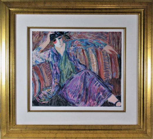 This artwork titled "Confiding" 2008 is an original color serigraph on Wove paper by Israeli artist Itzchac Tarkay 1935-2012. It is hand signed and numbered E.A 63/80 in pencil by t...