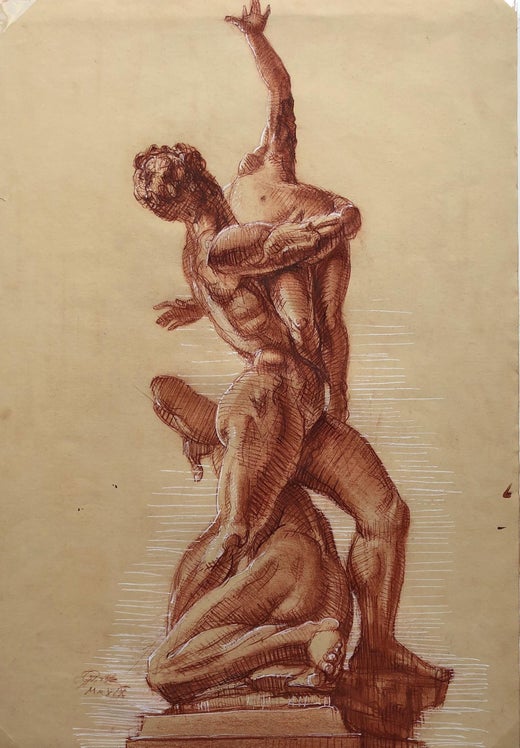 1980s Contemporary Figurative Drawings and Watercolors