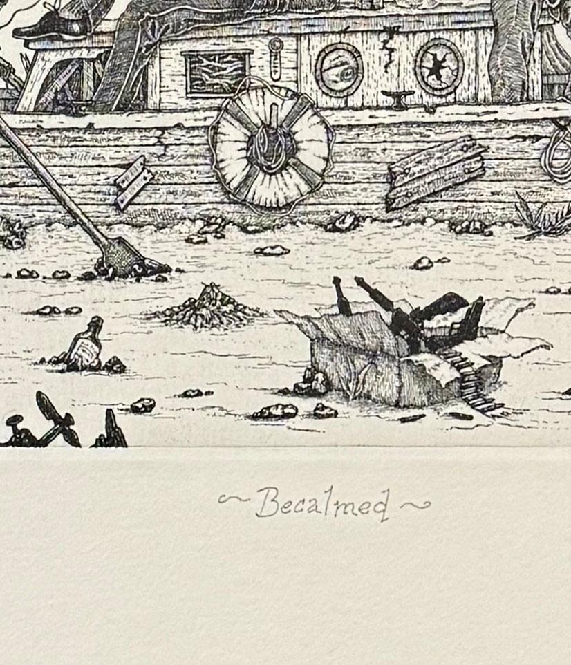 David Avery’s Concerning The Great Ship MOUR-DE-ZENCLE is a finely detailed black-and-white etching that exemplifies the artist’s masterful command of line and surreal symbolism. Avery frequently blends mythology, literary reference, and historical imagery, and here he draws inspiration from Alfred Jarry...