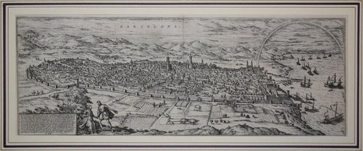 Braun and Hogenberg's 'The Civitates Orbis Terrarum' was the second atlas of maps ever published and the first atlas of cities and towns of the world. It is one of the most important books published in the 16th century. Most of the maps in the atlas were engraved by Franz Hogenberg and the text, with its descriptions of the history and additional factual information of the cities, was written by a team of writers and edited by Georg Braun. The work contained 546 bird-eye views and map views of cities and towns from all over the world. It gave graphic representation of the main features of the illustrated cities and towns, including the buildings and streets. Although the ordinary buildings are stylized, the principal buildings are reproduced from actual drawings created on location. The principal landmarks and streets can still be recognized today. In addition, the maps often include the heraldic arms of the city, the nature of the surrounding countryside, the important rivers, streams and harbors, even depicting stone bridges, wooden pontoons, flat-bottomed ferries, ships and working boats, wharves and jetties, as well as land-based activities, including horsemen, pedestrians, wagons, coaches, and palanquins. Small vignettes are often included which illustrate the trade, occupations and habits of the local inhabitants, such as agriculture, paper-making and textiles, as well as local forms of punishment, such as gibbets, wheels, floggings etc. Large figures dressed in their local costume are often presented out of proportion in the foreground. The aim of the authors was to give as much information as possible in a pleasing visual form. They succeeded in creating maps that were both informative and decorative works of art. The atlas is a wonderful glimpse of life in medieval Europe. Georg Braun (1541-1622) was German Catholic cleric who was born and who died in Cologne, Germany. He was the principal editor of 'The Civitates Orbis Terrarum', acquiring the tables, hiring the artists, and composing the texts. Abraham Ortelius, whose Theatrum Orbis Terrarum of 1570 was the first atlas of maps ever published, assisted Braun in his compilation of the details and maps for the atlas. The Civitates was intended as a companion for the Ortellius' Theatrum, as suggested by the similarity in the titles. Braun was the only survivor of the original team to live to see the publication of last volume (VI) in 1617. Franz Hogenberg (1535-1590) was a Flemish and German painter, engraver, and mapmaker. He was born in Mechelen (also known as Malines) in Flanders, the son of an engraver. After being expelled from Antwerp by the Duke of Alva, he moved to London and then eventually to Cologne, Germany, where he met Georg Braun and Abraham Ortellius. He engraved most of the plates for Ortelius's Theatrum and the majority of those in the Civitates. Many believe that he was responsible for originating the Civitates project.