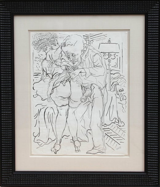 Many of Grosz’s drawings were published in albums (Gott mit uns, Ecce Homo, Der Spiesser-Spiegel, etc.), and he was subject to prosecutions for insulting the army and blasphemy. He visited the United States in 1932 to teach at the Art Students League, New York, and settled there in 1933. In the latter part of his career, he tried to establish himself as a pure painter of landscapes and still life, but also painted many compositions of an apocalyptic and deeply pessimistic kind. His role in the Berlin Dada movement affected political outlooks and artistic developments not only in Germany, but also in Russia, the Balkan nations, and parts of France.