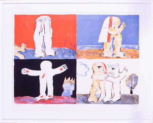Horst Antes (born 28 October 1936 Heppenheim, Germany) is a German artist and sculptor. After his Abitur, he studied from 1957 to 1959 under the important woodcutter HAP Grieshaber at the Akademie der Bildenden Künste (today known as the Staatliche Akademie der Bildenden Künste Karlsruhe) in Karlsruhe. In 1959, the artist's work was honoured with two prizes, art prize of the city of Hanover and the Pankofer prize on the occasion of the German Youth Art prize. In his early paintings, Antes sought a path somewhere between figurative painting and the L'Art Informel. One of his most important role models was Willem de Kooning. Around 1960 Antes discovered his 'Kopffüßler' (literal translation: Head-Footer), a form which preoccupied the artist in numerous variations and artistic techniques. By 1963 his 'Kopffüßler' was fully developed in its stylistic and contextual premises and became also compulsory for his sculptural work, which began the same year. The artist was given several scholarships and awards in the 1960s, including the Villa-Romana-Prize in Florence in 1962 and the Villa Massimo scholarship in Rome in 1963. Three years later, aged only 29, Antes accepted a teaching post at the Akademie in Karlsruhe. This was followed by a post as a professor also in Karlsruhe which he held from 1967 to 1973, as well as a one-year guest-professorship at the Staatliche Hochschule für Bildende Künste in Berlin. The artist resumed teaching at the Akademie in Karlsruhe in 1984 and continued teaching there for another 16 years. The regional capital awarded him the Hans-Molfenter-prize in 1989. Since 1990 Antes has been living and working in Karlsruhe, Florence and Berlin. His oeuvre includes not only paintings and graphic art, but also sculptures in public spaces. His works are exhibited throughout the world and are represented in all the most important German collections, et al. at the Kunsthall Hamburg, the Museum Ludwig in Cologne, the Nationalgalerie Berlin, and the Museum of Modern Art.