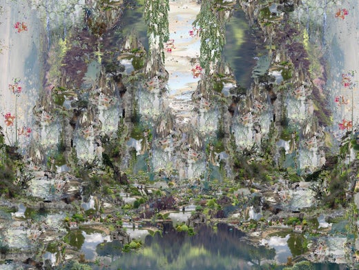 Jane Ward is a British artist born in 1960 who lives and works in London, UK. She is known for her modernised Romantic collages born from layering reconstituted landscape photographs with ink, watercolour and other digital media. Jane Ward studied an MA in Printmaking at the Royal College of Art, graduating in 2007. She then went on to win the Terence Conran Foundation Award and the Tim Mara Prize and has since enjoyed critical acclaim for her works. Although Romantic in style, there is something unarguably 21st century about Jane’s work. Her collages present a profusion of imagery, a multiplicity of fragmented perspectives, and an almost disorientating use of colour, all of which speak to our increasingly digital existence.