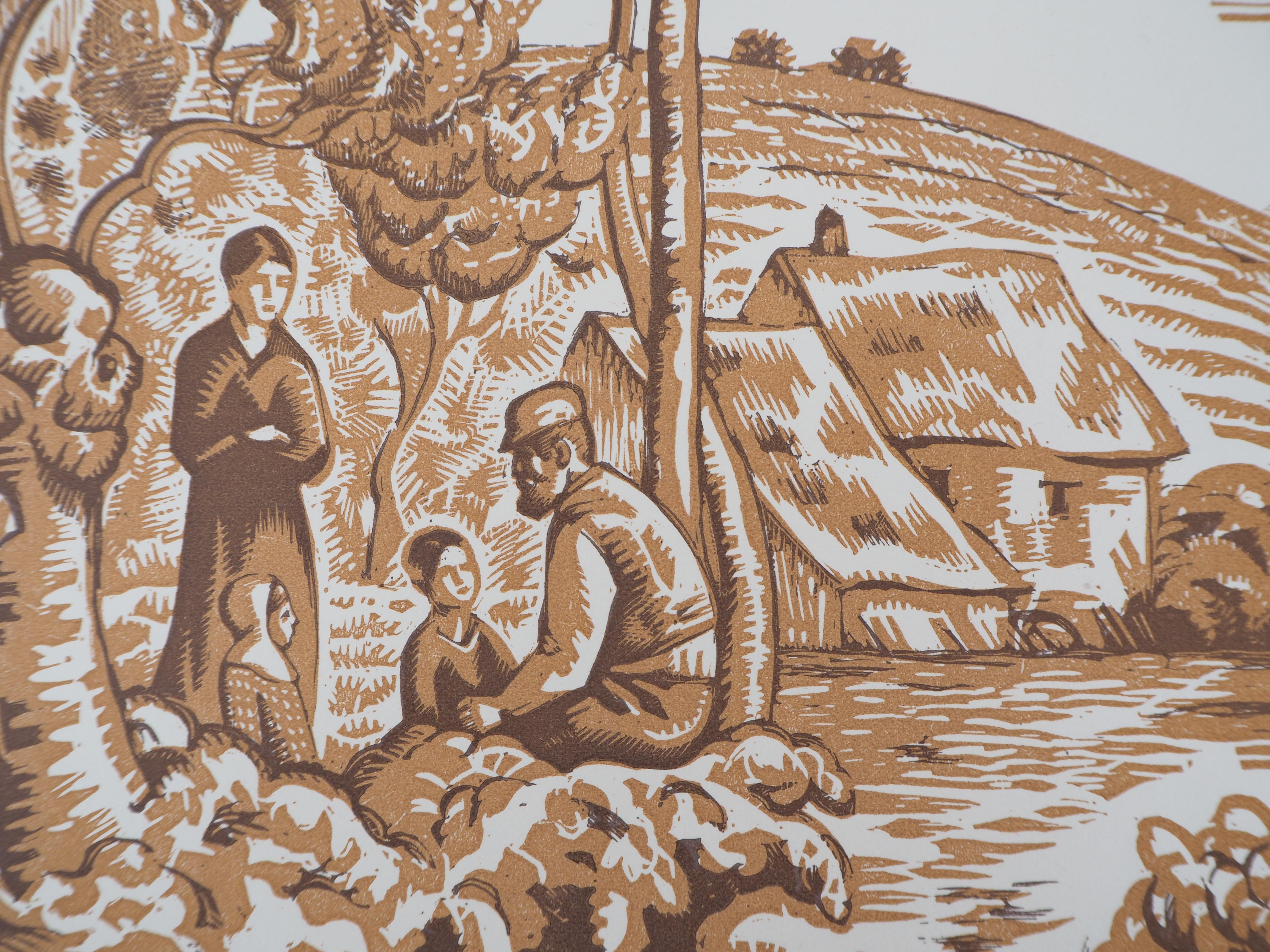 Paul ColinAllegory of Peace : the Family in Countryside - Original wooodcut, Handsigned1929