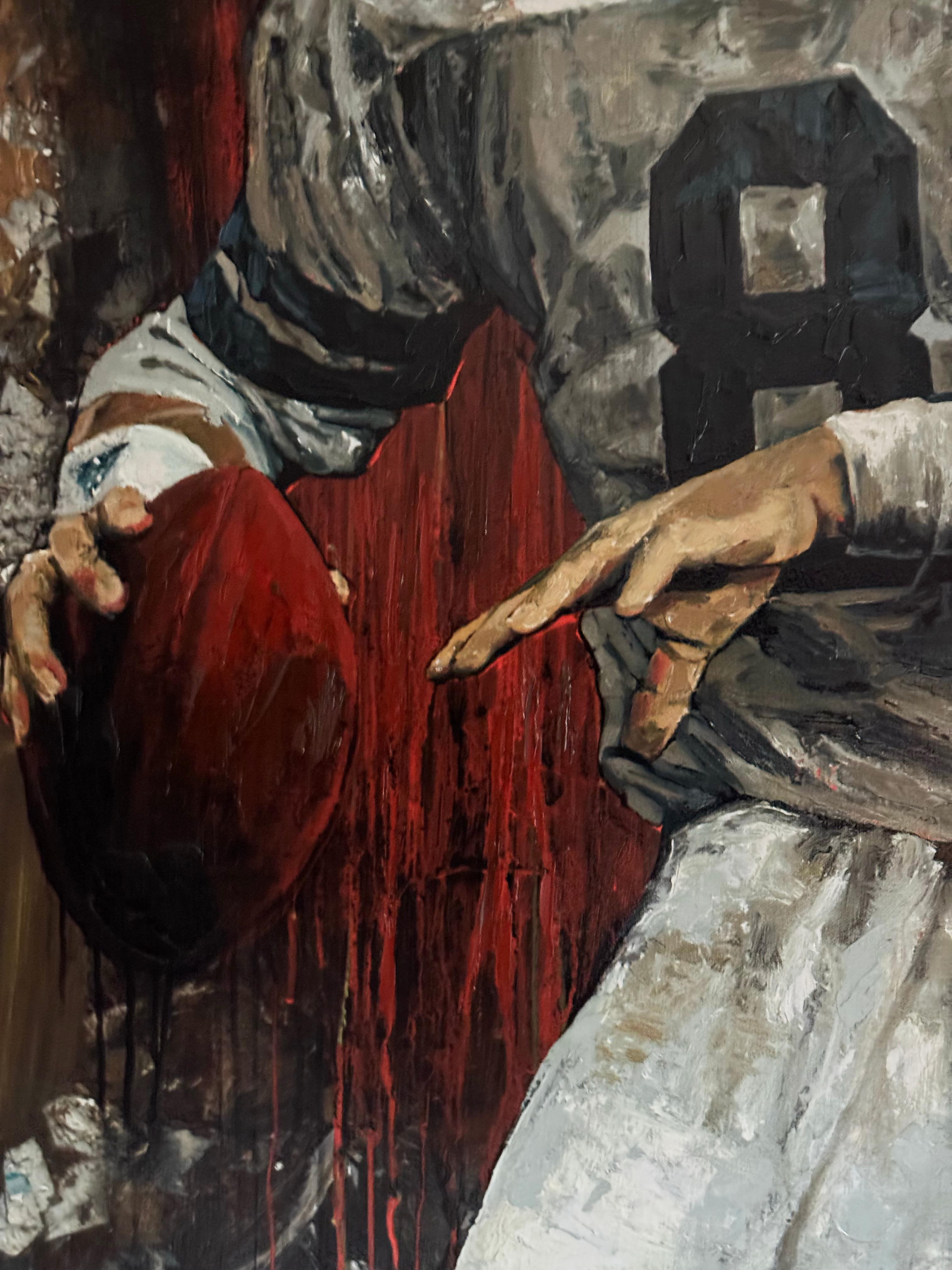 American football player in painting. The painting was painted with expressive strokes with a palette knife. This allows me to express the dynamics o...