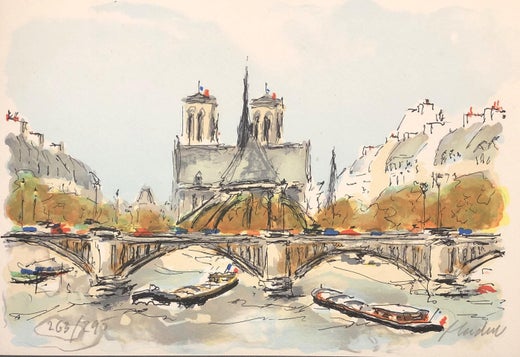Born In Rennes on April 28, 1930. After studying law and owning a textile factory for four years, de decided in 1960 to devote himself entirely to painting. He does many paintings of landscapes and the typical people of his region. His love of the Brittany coast and the sea can always be seen in his work. fter moving to Paris in 1963, his love of adventure and travel led him to spend more time painting and writing in Europe, the Middle East, and South America, where he produced many paintings of the Indian Markets and the great scenery. He made 14 trips of more than 4 months each, from Mexico to Brazil via Peru, Central America and the Caribbean Islands. In Addition to the paintings he has written a book about these beautiful countries. A luxurious portfolio of paintings of Egypt shows his love of that country. Urbain Huchet has held exhibitions in New York, london and New Orleans, and Several in Egypt, however, Paris is where his largest number of works have been produced. At least 300 editions of lithographs have been printed of his works, all produced by the artist himself in different workshops in Paris and Cannes. Huchet died in 2014.