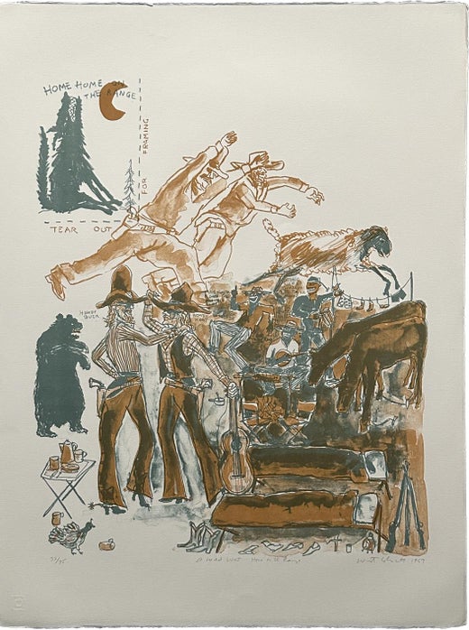 Warrington ColescottHome on the Range 1969 A Wild West Signed Original Lithograph1969