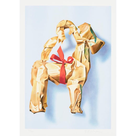 Yrjö Edelmann was a Swedish painter celebrated for his Hyperrealist paintings of clumsily wrapped packages. To create his smooth trompe-l’oeil surfaces, Edelmann built up thin layers of oil paint using a traditional Renaissance glazing technique, gradually achieving the highest possible degree of dexterity and illusionism. By only depicting wrapped parcels, his oeuvre maintains a pervasive sense of tension and mystery, leading viewers to speculate what could be hidden beneath the wrapping paper. Born on October 17, 1941 in Helinski, Finland, he attended the University College of Arts in Stockholm before being inspired by James Rosenquist and upending his traditional artistic background. Similar to his contemporary Photorealist peer Claudio Bravo, Edelmann said that “one day in 1976, I looked out of the window in my studio and saw just this one single cloud. If I’d just painted that it would’ve just been an ordinary landscape painting, and I didn’t want that, but then I suddenly noticed a piece of crinkled paper on my table, and so I cut it to the shape of a cloud, and painted that against a realistic landscape.” He died March 14, 2016 in the Upplands-Bro Municipality of Sweden, and is remembered as one of Sweden’s most acclaimed contemporary artists.