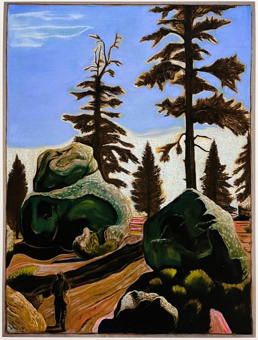 Billy Childish (b. 1959, Chatham, Kent, United Kingdom; lives and works in Whitstable, Kent) is known for his introspective, autobiographical, and deeply emotional paintings, writing, and music. After leaving secondary school at age 16, Childish worked at the Naval Dockyard in Chatham as an apprentice stonemason. Initially denied an interview to the local art school, he produced hundreds of drawings that gained him entry to London’s Saint Martin's School of Art. Childish's defiance of authority led to his eventual expulsion from art school in 1981. Since then, Childish has gained something of a cult status worldwide, writing and publishing several novels and more than 40 volumes of confessional poetry, recording more than 150 LPs, and painting several hundred works. Through all of these disciplines, Childish addresses social, political, and personal issues such as war, protest, his turbulent childhood, and his struggles with addiction. While his confessional poetry and music explore these issues with startling honesty, Childish’s paintings are more subtle. His subjects are often drawn from his environment or are people he knows or admires: birch forests, self-portraits, a lone figure in a pastoral English landscape, and his wife as a reclining female nude. Childish works quickly and intuitively, making spare marks on raw canvas that leave much of it visible. He identifies with artists who worked outside a group or movement, intrigued by their outsider roles in society, such as Vincent van Gogh, Kurt Schwitters, and Edvard Munch. Labeling himself a “radical traditionalist,” Childish has a reverence for traditional oil painting yet has resolutely resisted any connection with a particular group or artistic movement.