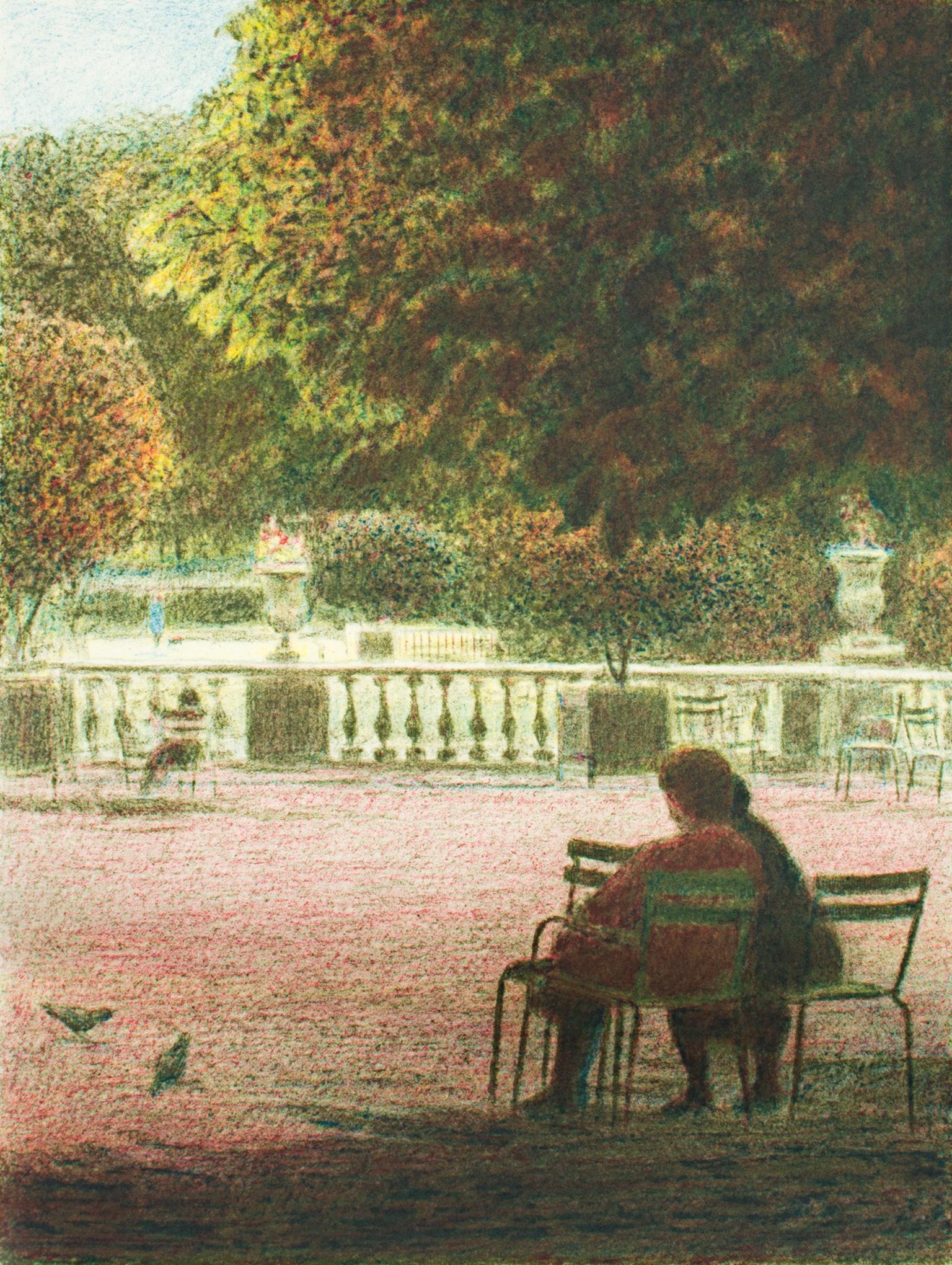 Harold Altman"Seated Couple, " Original Color Lithograph signed by Harold Altman1998