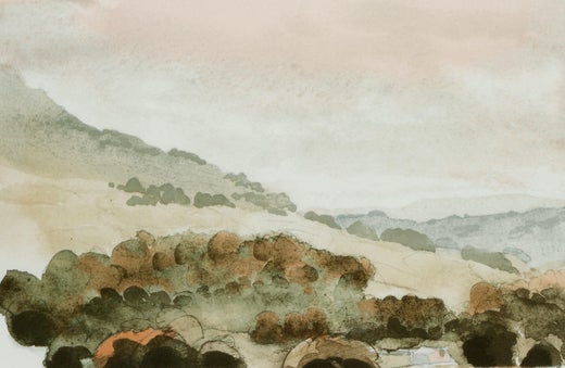 “The third lithograph to be produced was the very dramatic Windsor Castle which was painted in winter, just before a thunderstorm. The sky has turned black and the Prince told me that he raced outside to try to capture the dramatic shafts of sunlight on the Castle walls before the deluge. He didn’t finish the tree on the right and told me that he was afraid the composition would be spoiled if he went back to work on it indoors.” - Anna Hunter.