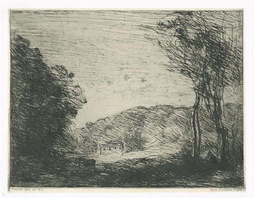 Landscape #4 is a beautiful original etching realized by Camille Corot in the middle of XIX Century.