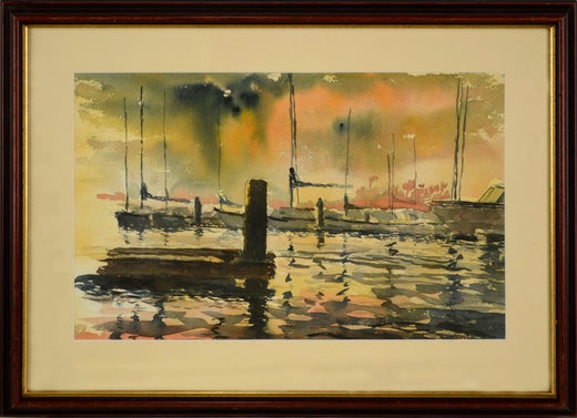 Anton Sipos (American, b.1938) California Harbor View Original Oil Painting c.1980