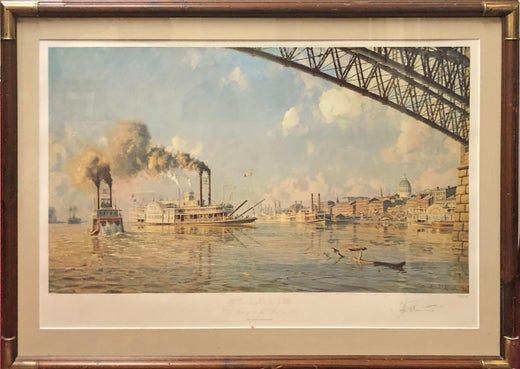 John Stobart was a British maritime artist known for his paintings of American harbor scenes during the Golden Age of Sail. His fascination with the sea stemmed from childhood visits to his grandmother in Liverpool where he observed the city's busy docks. After graduation, he travelled to Africa with his father and made sketches of the 12 ports he visited there, inspiring him to pursue maritime art as a specialty. Stobart emigrated to Canada in 1957 where his paintings sold well to the various shipping companies on the St. Lawrence River. In 1965 he made his first visit to the U.S. and was offered a show at the Kennedy Galleries. Later, he established the Stobart Foundation to encourage traditional artists through scholarships. He moved in 2015 to Fort Lauderdale, Florida which is where he died in 2023 at the age of 93.