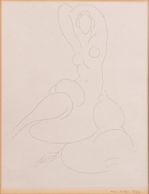 Throughout his long and productive career, Matisse periodically refreshed his creative energies by turning from painting to drawing, sculpture and other forms of artistic expression. In his lifetime he also produced 12 illustrated books which were known as “livre d’artiste” (artist’s book), a specific type of illustrated book that became common in France around the turn of the century. These books were deluxe, limited editions, meant to be collected and admired as works of art, as well as, read. This process began when Swiss publisher Albert Skira first approached the modern master in 1930 to illustrate the work, Poesies, by 19th century French symbolist poet Stéphane Mallarmé . Matisse responded to Skira’s invitation with great enthusiasm and that summer, devoted most of his attention to the commission while he was residing in Paris. The result was a collection of 29 beautiful etchings, of which the Museum will display 16. The subject matter, like the poems themselves, varies considerably, although many of the images reflect the artist’s vacation to the South Pacific. Matisse’s etchings of Mallarmé’s poems are considered among his greatest works in the print medium. In 1941, again for Skira, Matisse began one of his most complicated and successful printmaking projects, Florilege des Amours de Ronsard, illustrating the love poems of 16th century French Renaissance poet Pierre de Ronsard. Ronsard’s subject and strong imagery lent themselves gracefully to Matisse’s favored themes of fruits, flowers, the female form and portraits. The artist selected the poems himself and translated the work from Renaissance French to contemporary French for the publication of the anthology