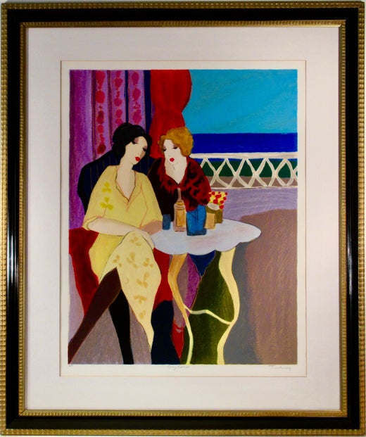 Itzchak TarkayItzchak Tarkay Noonday Chat Cafe Large Embossed Color Serigraph Hand Signed Art