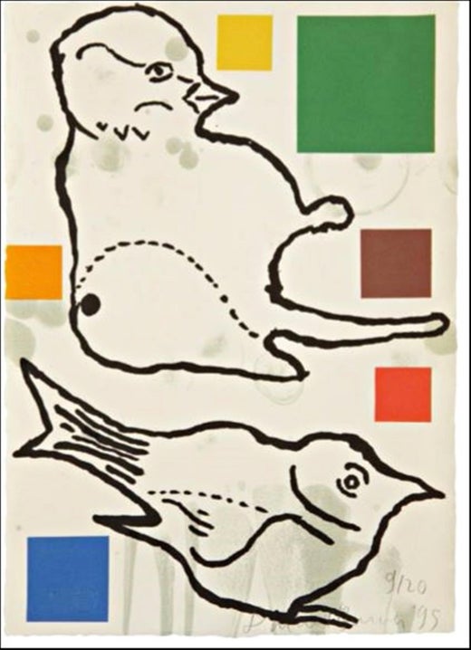 Hunt Slonem (born Hunt Slonim, July 18, 1951) is an American painter, sculptor, and printmaker. He is best known for his Neo-Expressionist paintings of tropical birds, often based on a personal aviary in which he has been keeping from 30 to over 100 live birds of various species. Slonem's works are included in many important museum collections all over the world; he is exhibiting regularly at both public and private venues, and he has received numerous honors and awards.