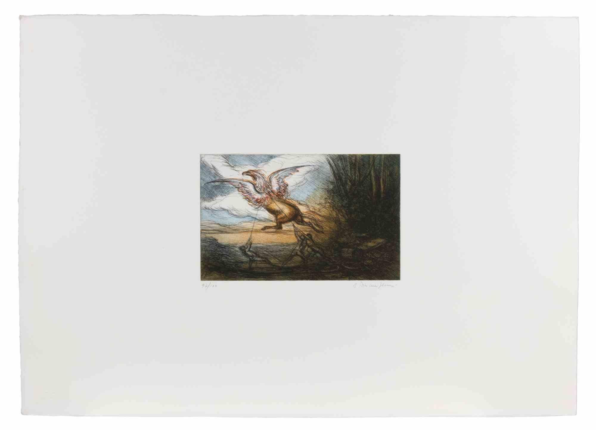 This artwork titled "Intrepid Caribou" 2002 is an original color stone cut on Japan paper by noted Canadian/Inuit artist Kananginak Pootoogook, 1935-2010. It is hand signed, dated, titled, located, described and numbered 22/50 in pencil by the artist. The image size is 18.5 x 12.5 inches, sheet size is 23 x 16 inches, framed size is 24.85 x 29.65 inches. Custom framed in a black metal frame, with black matting. It is in excellent condition.