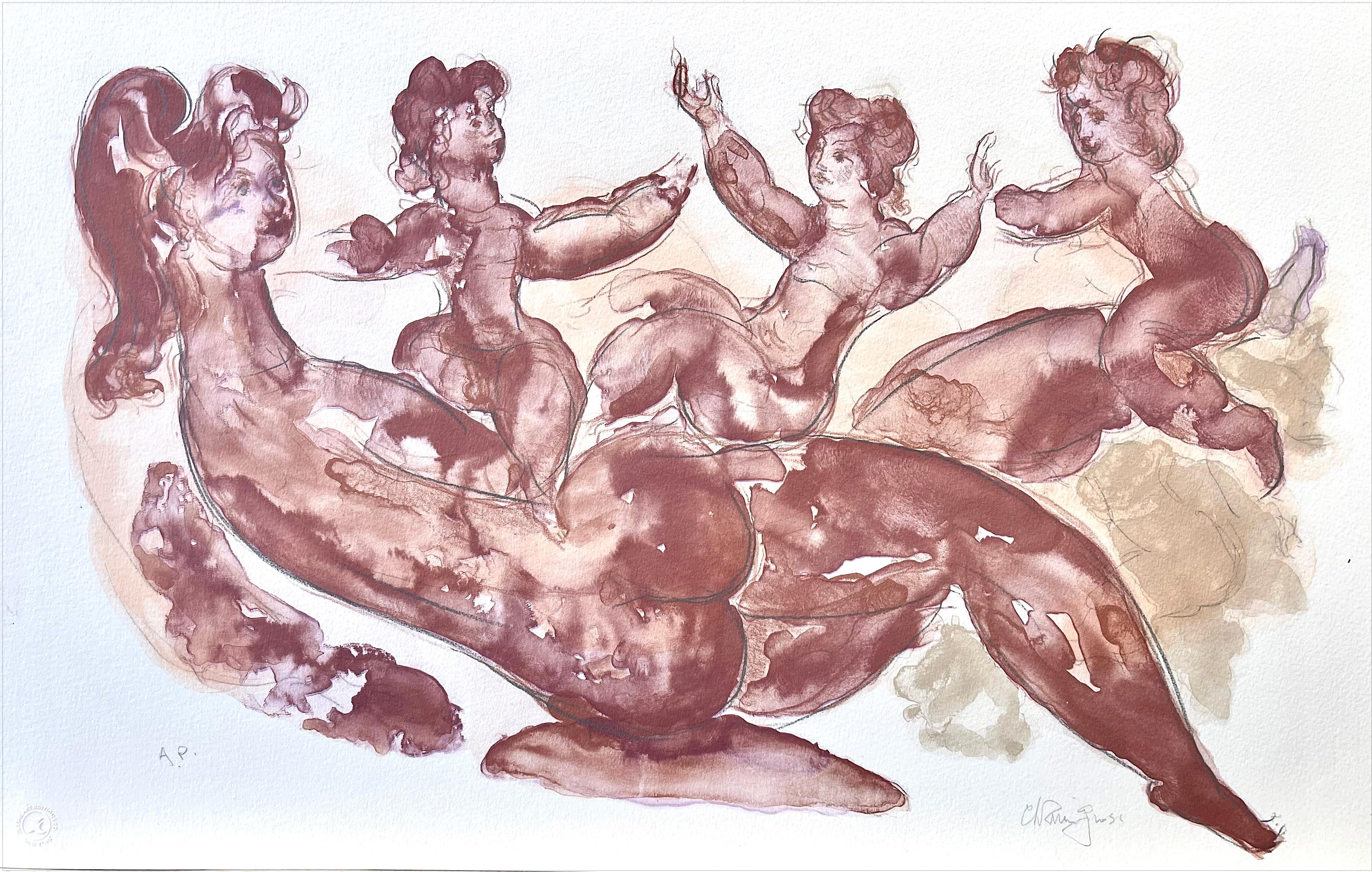This exquisite lithograph by Marc Chagall (1887–1985), titled Cheval bleu au couple (Blue Horse with Couple), originates from the historic 1982 folio Derriere le Miroir, No. 250, Hommage a Aime et Marguerite Maeght (Tribute to Aime and Marguerite Maeght). Published by Maeght Editeur, Paris, under the direction of Aime Maeght, and printed by Imprimerie Moderne du Lion, Paris, this vibrant composition reflects Chagall’s lyrical fusion of color, dream, and devotion. In Cheval bleu au couple, ethereal figures and a radiant blue horse float within a luminous space of poetic imagination, evoking love, memory, and transcendence. The image captures the artist’s timeless ability to unite fantasy and emotion within the expressive language of modernism.