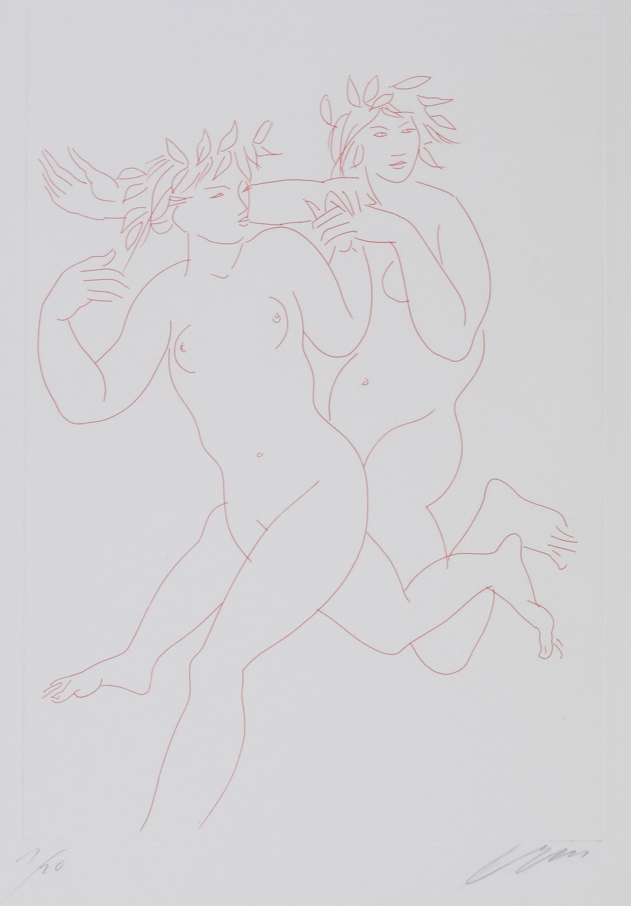 Beneath the inky blackness, the painter’s irrepressible energy electrifies this pair of intaglio prints.