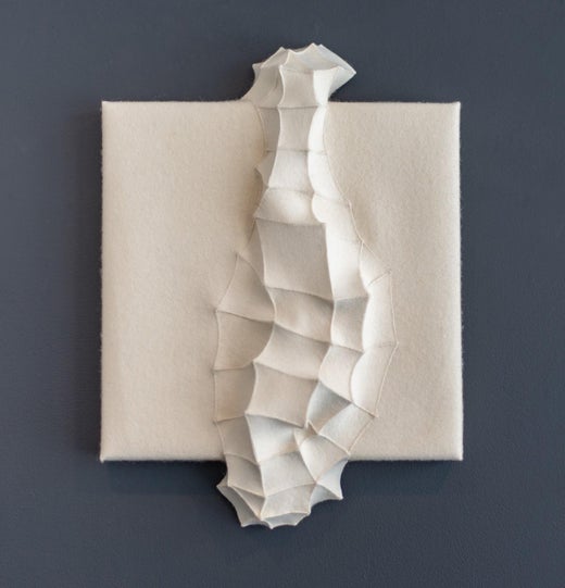 Chung-Im KimGangmul - white, textured, biomorphic, abstract, industrial felt wall sculpture2022