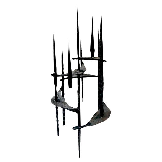 David PalomboBrutalist Forged Iron Circular Menorah Sculpture Israeli Master David Palombo