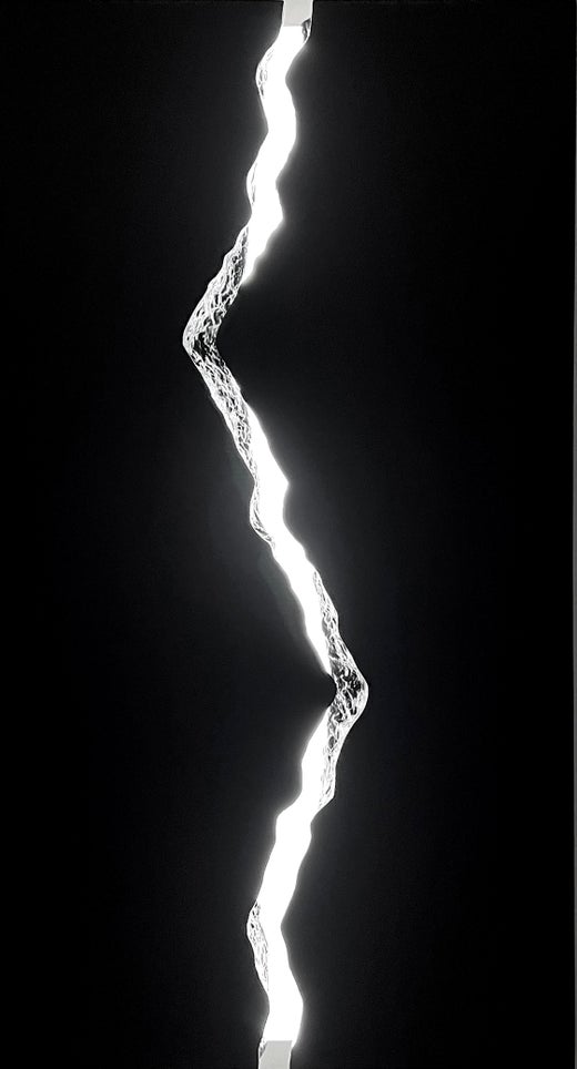Mario Rodriguez Echeverry, known by his artistic alias "MAREO" and represented by Escat Gallery, was born in Mexico City in 1981 and spent his formative years in Colombia before settling in Barcelona. He holds a B.A. in Architecture from UPB Medellin (2004), a master's degree in Design from Elisava Barcelona (2006), and a master's degree in Arts from UNA Buenos Aires, Argentina (2013). Mareo's artistic journey has been marked by 16 solo exhibitions and participation in numerous international art fairs and projects spanning North America, Latin America, the Middle East, Asia, and Europe. Key highlights include "Arte nel Bosco" Land art project in Italy (2016), Art Toronto (2017), "Viaggio" at Palazzo Ferrero in Italy (2018), L.A. Art Show (2018), "Carre Latin" at Palais Royal in Paris (2018), Sharjah Islamic Arts Festival in Emirates (2018, 2019), Artefiera Bologna (2019, 2020), ArtVerona (2021), Illumia NFT monolith event inaugurated by Deepak Chopra in Miami (2021), "Portals" solo exhibition at Valletta Contemporary, Malta (2021), and participation in the Istanbul Triennial with a site-specific installation (2022). In 2022, Mareo exhibited alongside Christo and Jeanne Claude at Hexton Gallery in Aspen and showcased an installation at the "Wavelength" exhibition in Times Art Museum, Beijing, China. In 2024, he created a monumental 60-meter-high light installation at the Inota Festival in Hungary and opened a solo exhibition at LOAD Digital Art Gallery in Barcelona. His work has been featured in various publications and books, including "Expansion" published by E3 contemporanea and Vanillaedizioni in 2018, "Matter is condensed light" (self-edited, 2020), and VC 03 featuring the "Portals" exhibition by Valletta Contemporary, Malta (2022). Mareo's pieces are housed in prestigious private collections and institutions worldwide, including Gerry Bonetti, Bruno Tropeano, Palazzo Ferrero in Italy, Margot & Dennis Knight in the USA, Hotel Atlantis II in Dubai, META Foundation in Malta, Sandstorm Gold Headquarters in Vancouver, and the Black Gold Museum in Saudi Arabia. My work is a tribute to the sublime forces of nature, shaping the natural world into a metaphysical space. This blend of landscape abstraction and spiritual exploration encapsulates the dichotomy between "Matter" in the physical plane and "Light" in the quest for the ethereal and sacred. The "Portals Series" represents the synthesis of this ongoing journey, exploring the symbolic significance of the wavy line—a motif ingrained in the natural world. These sinuous lines, whether found in mountains, rivers, or lightning, symbolize both separation and connection, serving as gateways to the unknown and the void. In my interpretation, these fissures transcend mere divisions; they become conduits for detachment and evolution, mirroring the human condition.