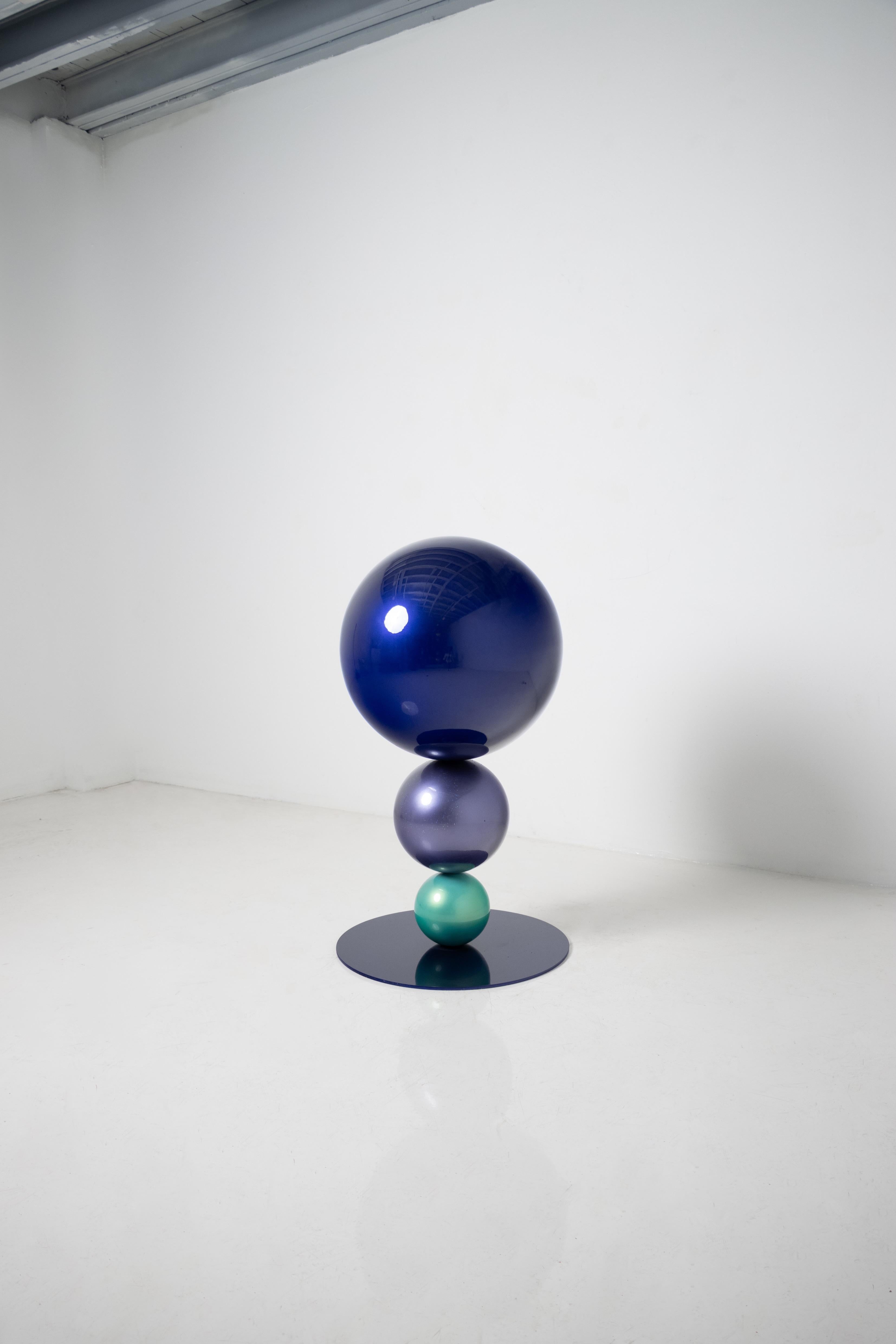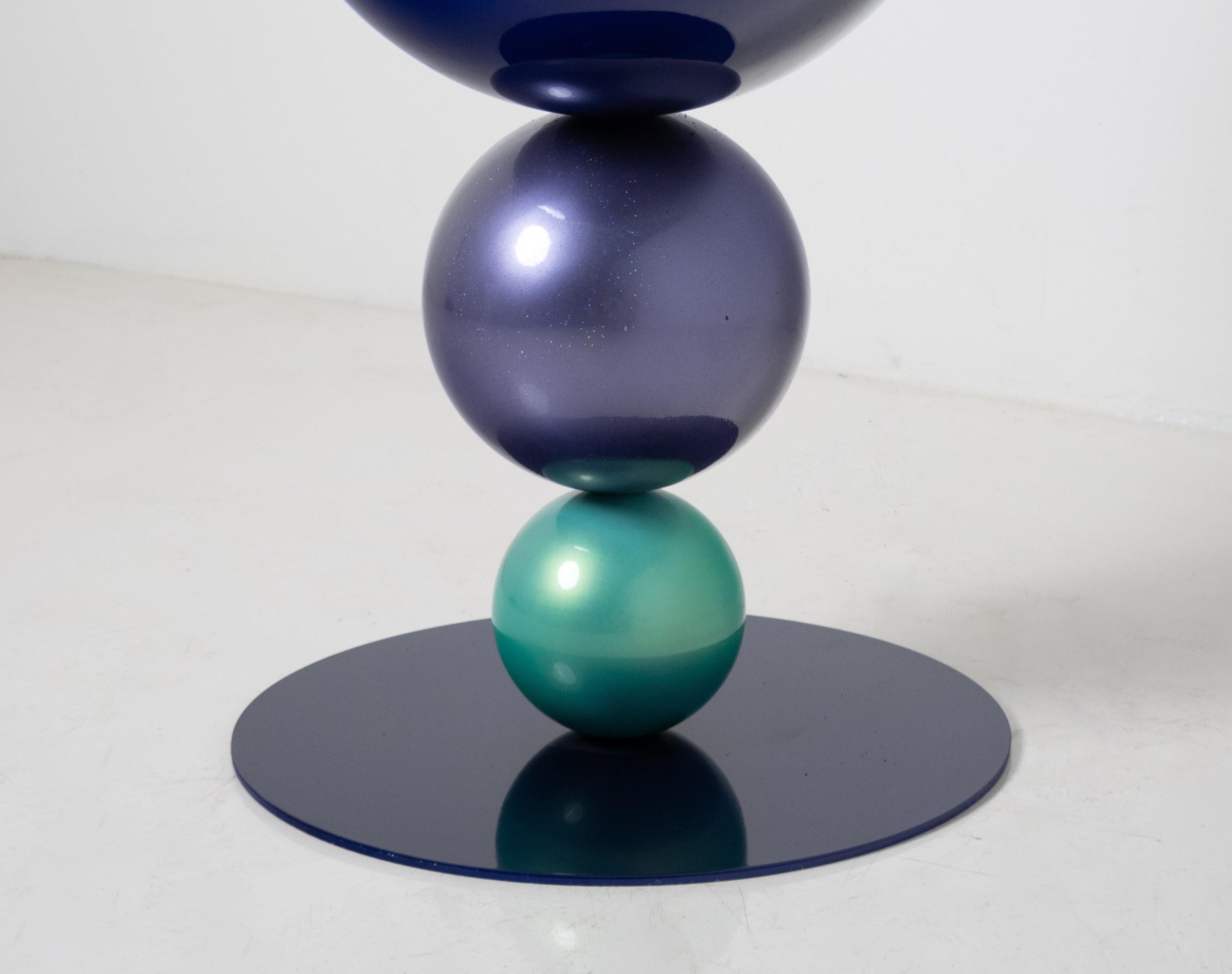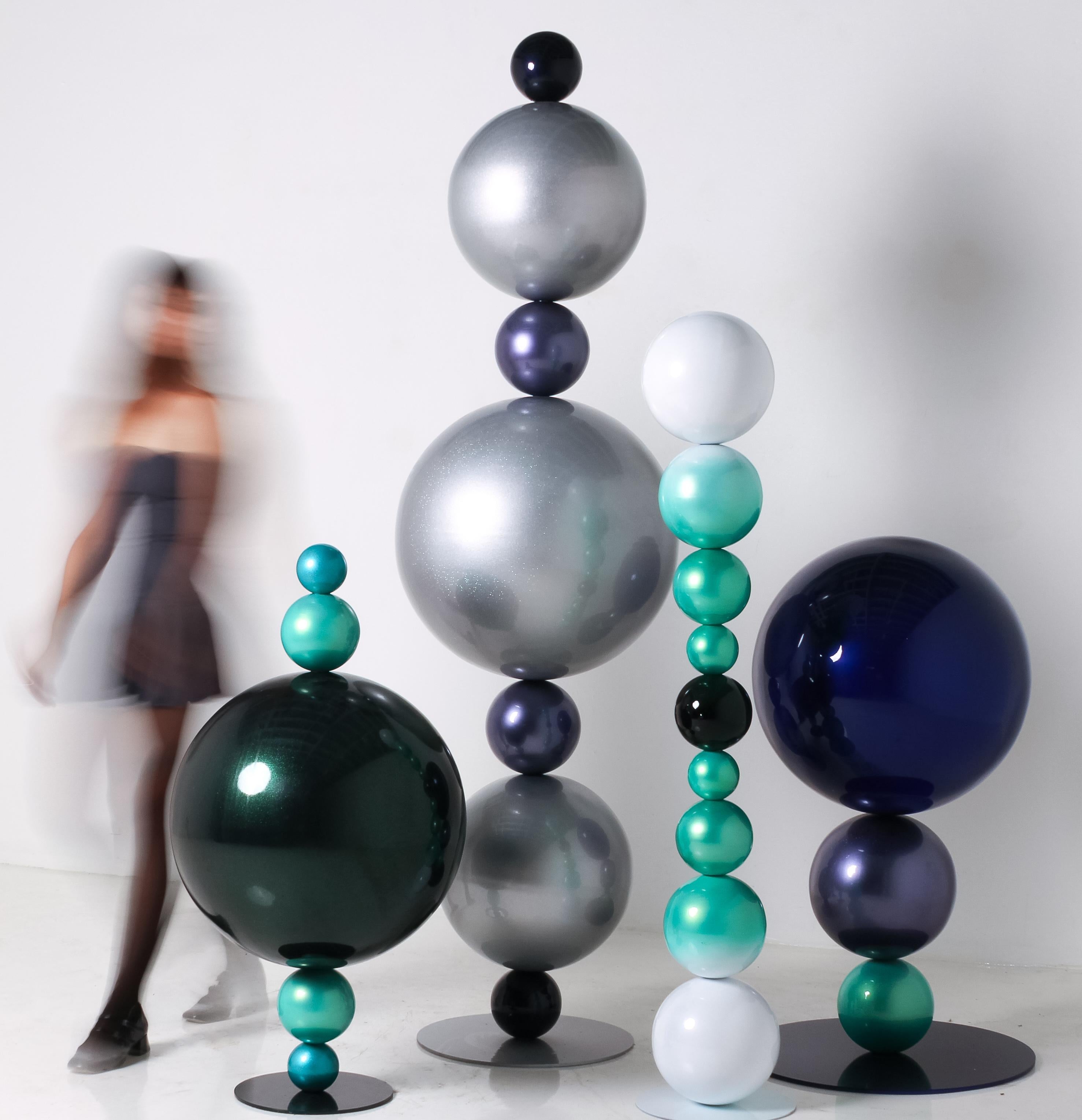 His signature, playful works made of reflective steel spheres capture the symmetry, volume and balance present in both nature and design. These spheres are placed together to create new forms that reflect the vibrant and dynamic nature of the world around us, and the impact of our ever-changing perspective. Kolodny’s site-specific and shapeshifting installations construct a kinetic and immersive environment for viewers, creating space for moments of mindfulness and self-reflection within their experience. Transcending the traditional boundaries of art, the artist creates new worlds with each installation, that are at once both fantastical and organic. His practice seeks to encourage viewers to engage with the world around them in new, more meaningful and imaginative ways, inspiring a childlike wonder.